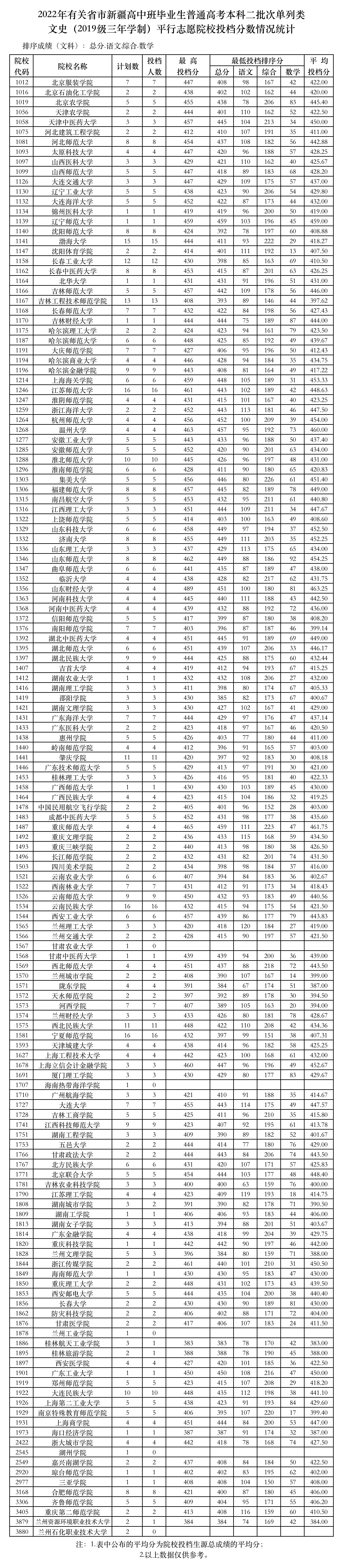 2022年有关省市新疆高中班毕业生普通高等学校招生录取生源情况统计表-单列类文史2019级三年学制本科二批次