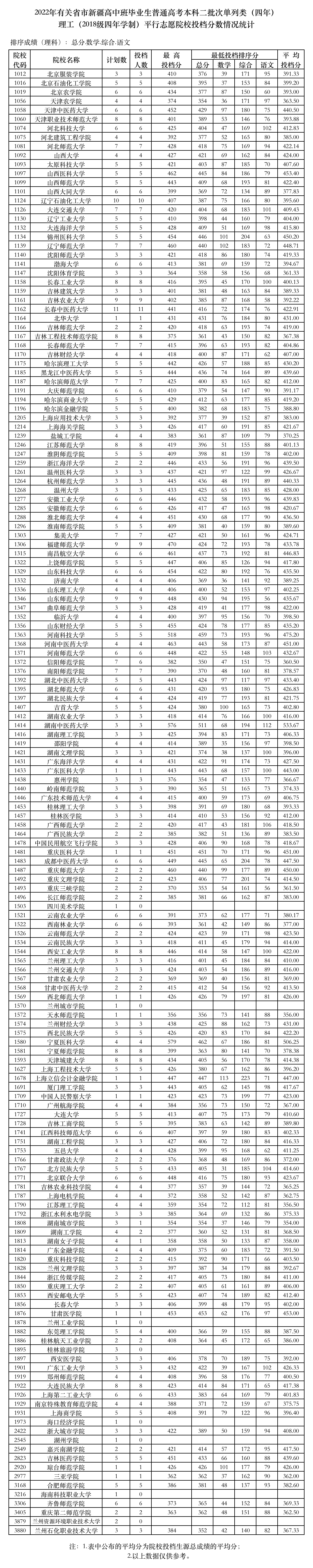2022年有关省市新疆高中班毕业生普通高等学校招生录取生源情况统计表-单列类理工2018级四年学制本科二批次