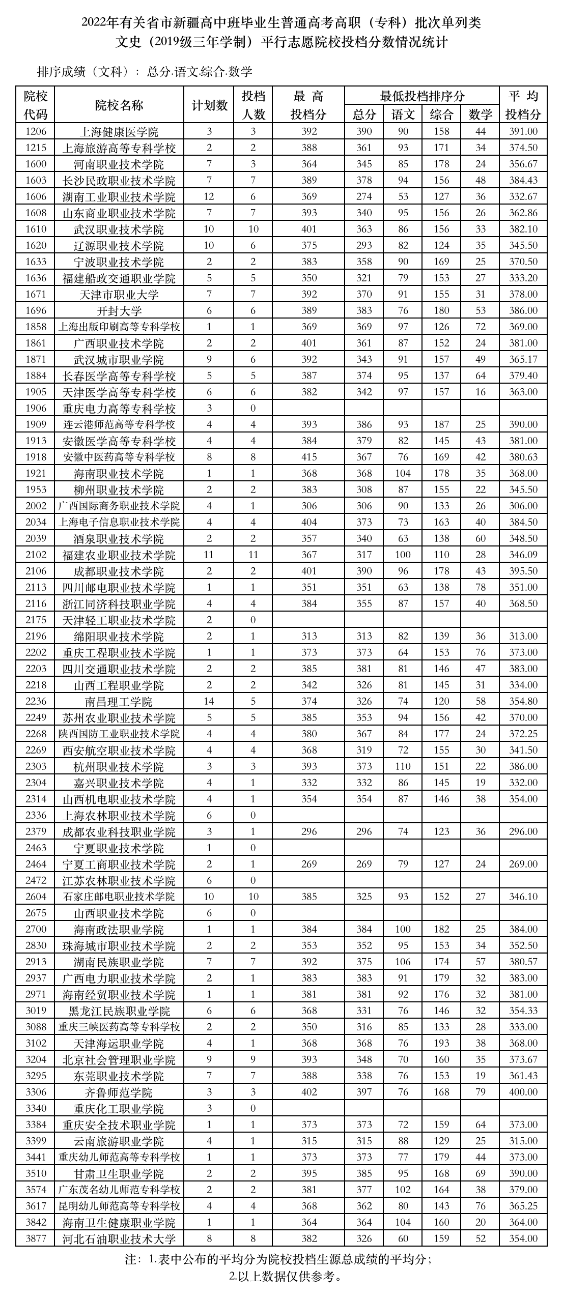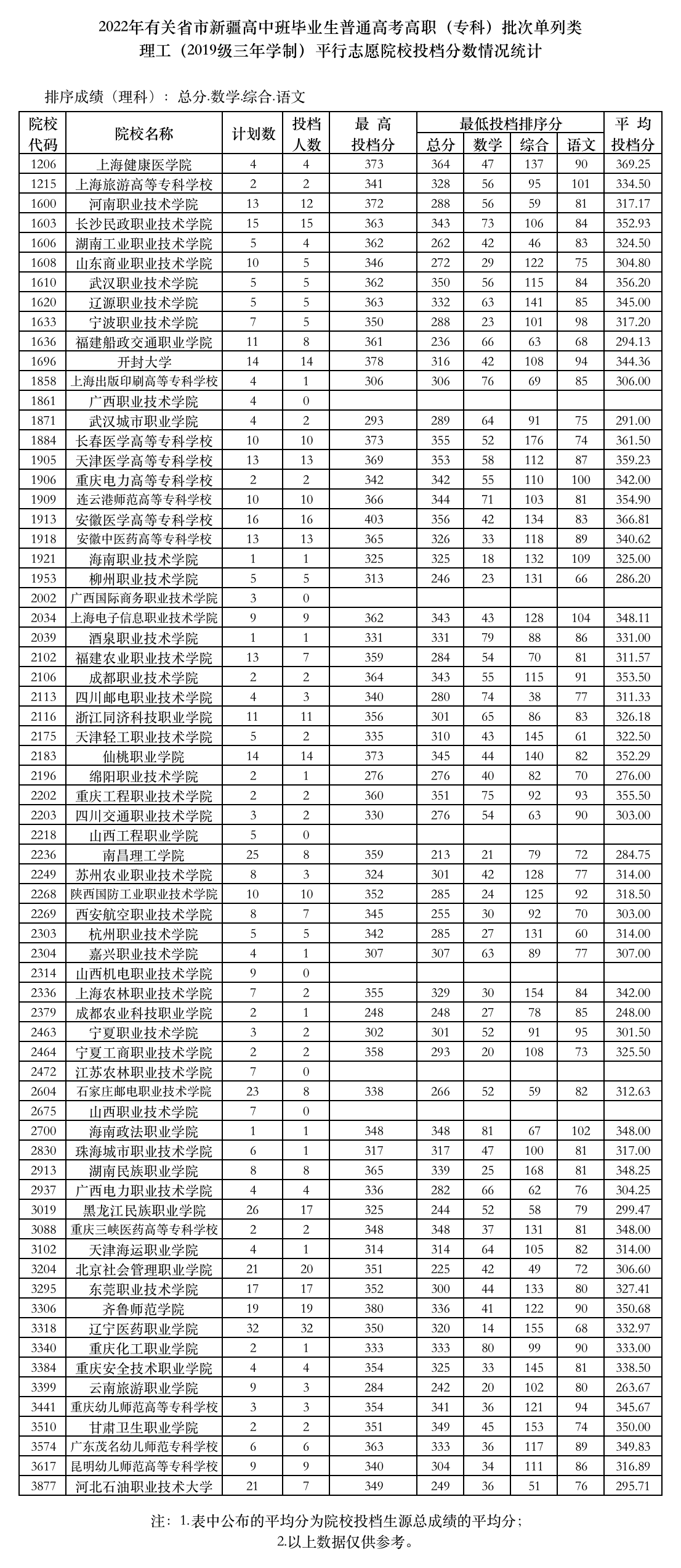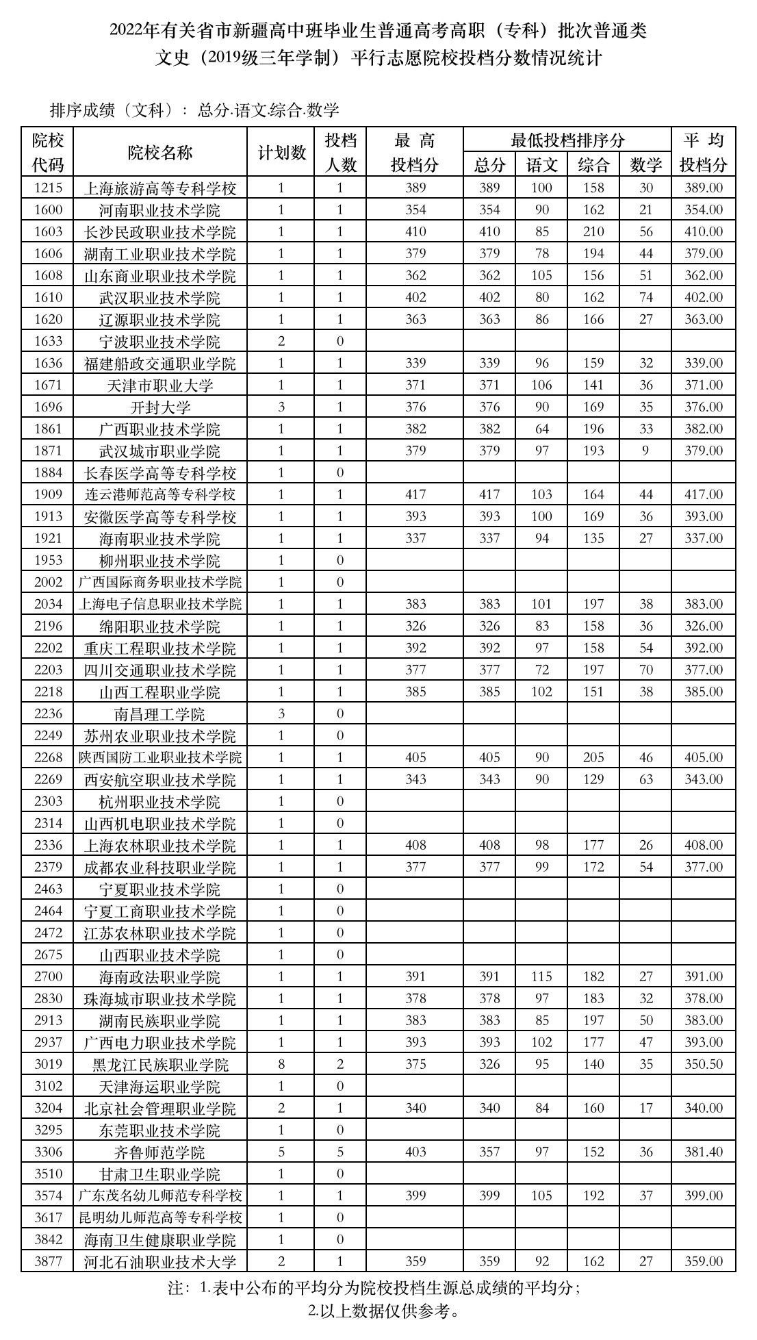 2022年新疆高中班毕业生高职(专科)批次录取分数线