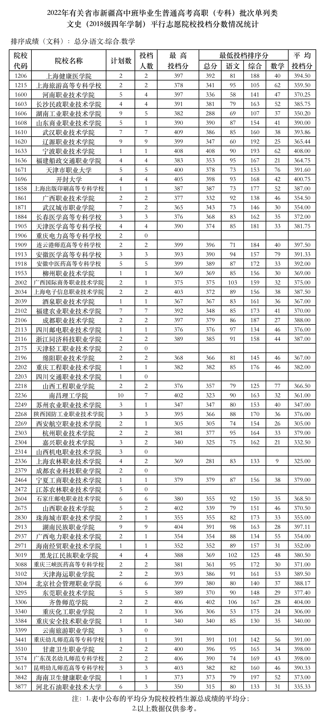 2022年有关省市新疆高中班毕业生普通高等学校招生录取生源情况统计表-单列类文史2018级四年学制高职(专科)批次