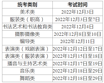 省教育考试院已发布2023年艺术类专业省级统考工作安排。各类别统考时间安排如下(如因疫情调整考试时间另行通知)。