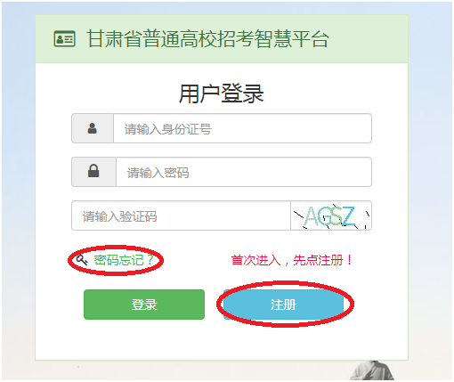温馨提示:关注【掌上高考APP官方】公众号,回复【真题】获取2022年各省高考真题(word版)汇总1、考生登录(http://www.ganseea.cn)甘肃省教育考试院官方网站。2、点击“通知公告”栏目下方的“普通高校招考智慧平台”。3、进入后先进行注册。4、注册时请先阅读《考生须知》,阅读完成后请点击“我已经认真阅读以上内容,熟知考试注意事项,现在开始注册”。5、《考生须知》阅读完成后,请开始阅读《报考承诺书》,阅读完成后请点击“我已经认真阅读以上内容,并承诺诚信参加考试”。6、请按要求填入相关信