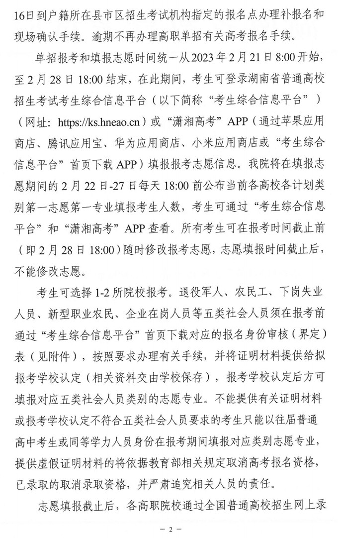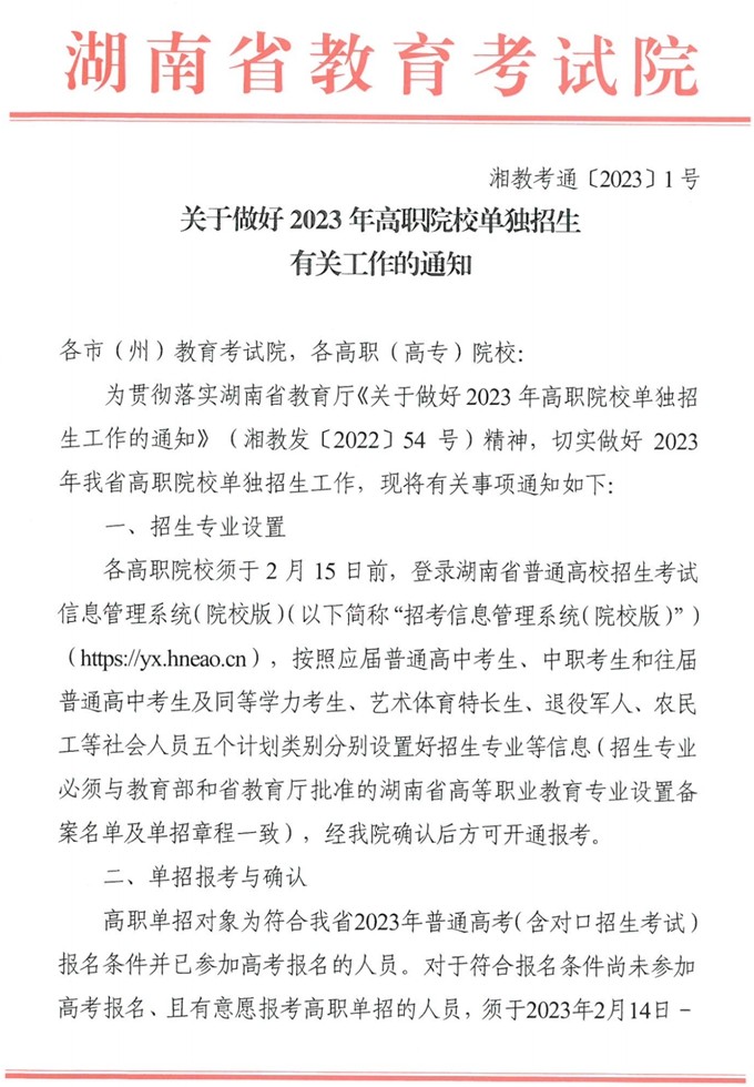 湖南:关于做好2023年高职院校单独招生有关工作的通知