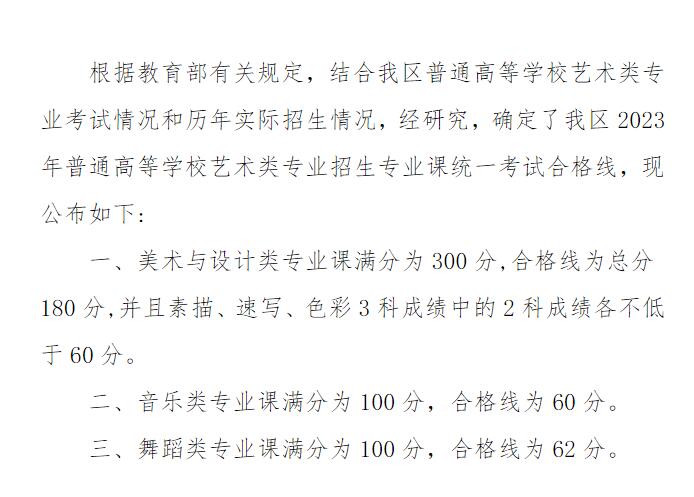 - 北京:2023年高考美术类专业统一考试合格分数线
