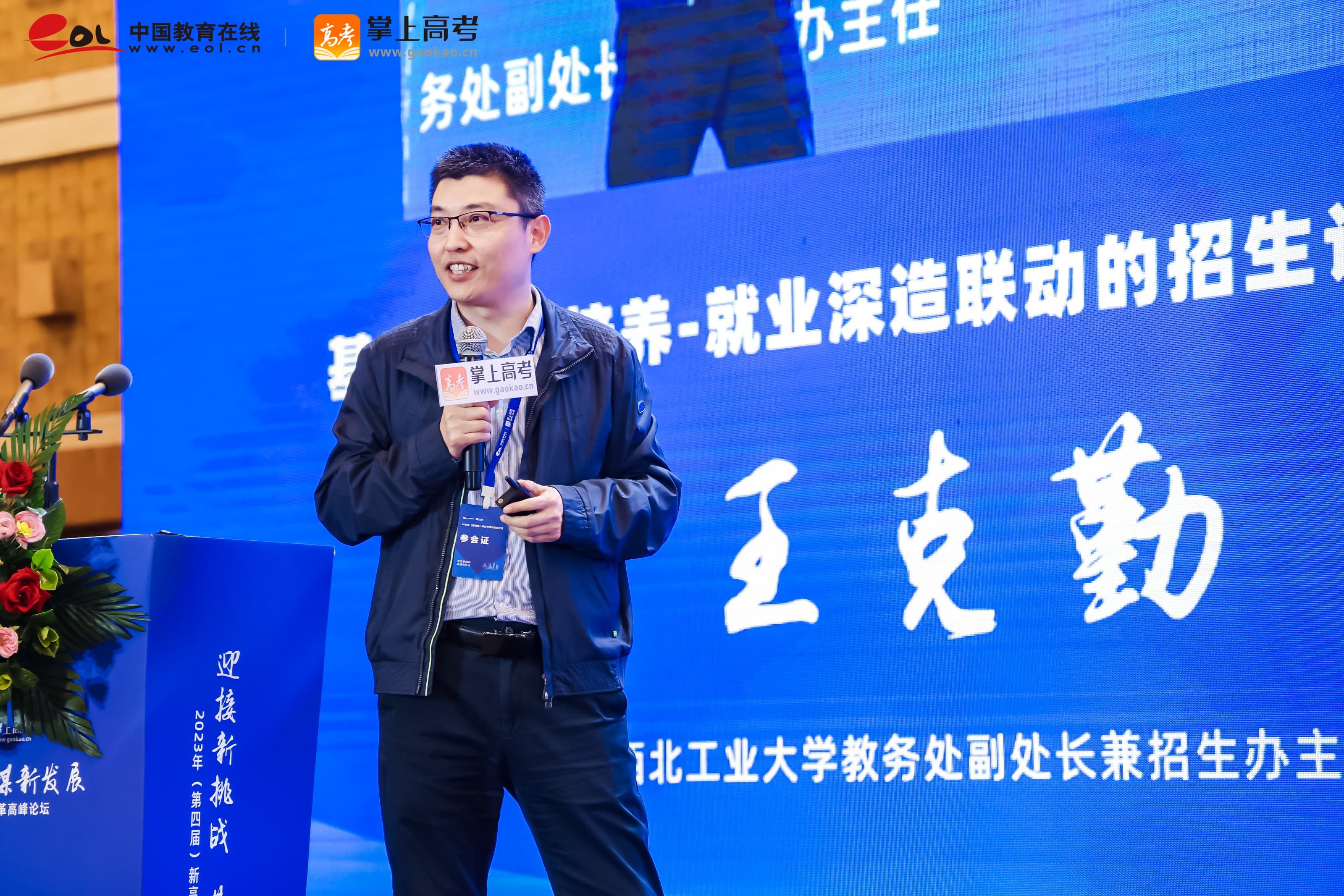 西北工业大学教务处副处长兼招生办主任王克勤在会上做了《基于招生-培养-就业深造联动的招生计划动态配置》的主题报告。他表示,本科招生指标是学校人才培养的关键资源,本科招生宣传是保障生源质量的重要手段。西北工业大学通过招生计划动态配置,反馈、联动人才培养、就业深造工作,推进质量提升,实现了招生-培养-就业联动机制的可持续发展。