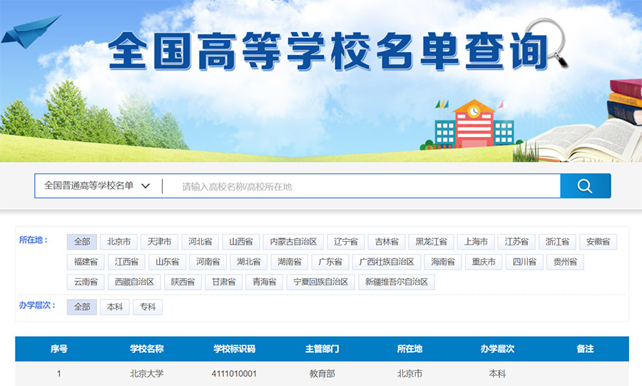 进入:教育部网站高校名单栏目查询