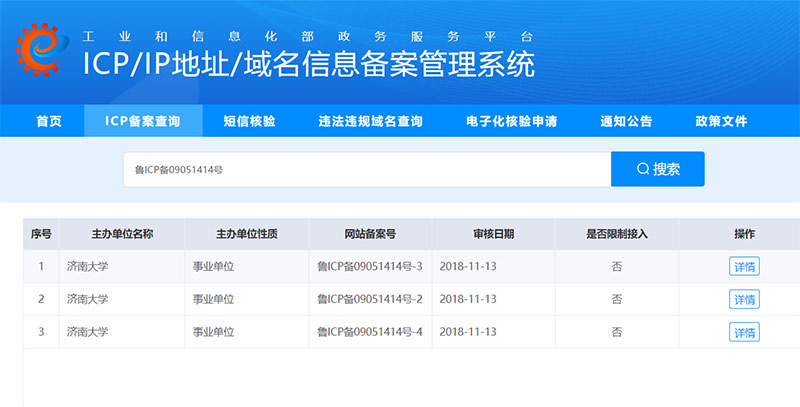 进入:工信部域名信息备案管理系统查询