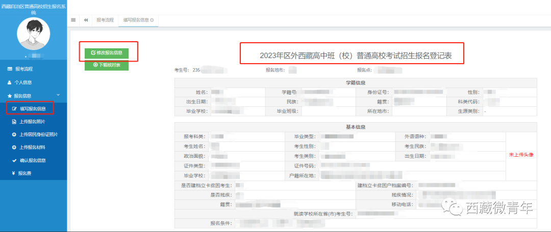 2023年西藏班高考网上报名流程