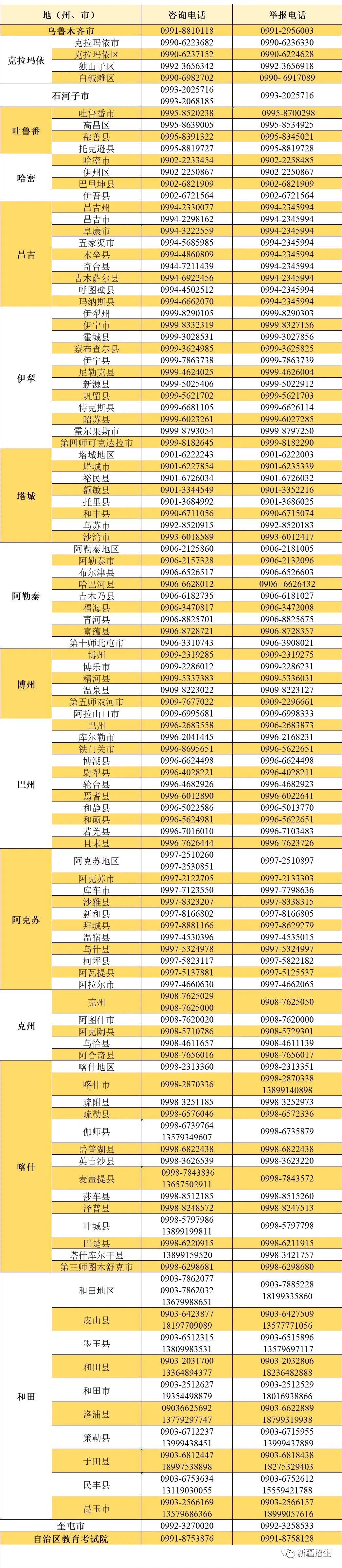 考生可登录“新疆招生网”查看《关于印发〈自治区2023年普通高等学校招生体育类专业测试工作方案〉的通知》,详细了解我区2023年普通高等学校招生体育类专业测试报考条件及相关要求,按时按要求完成网上报名。考生如有疑问,可拨打当地教育考试机构咨询电话(详见下表)咨询。