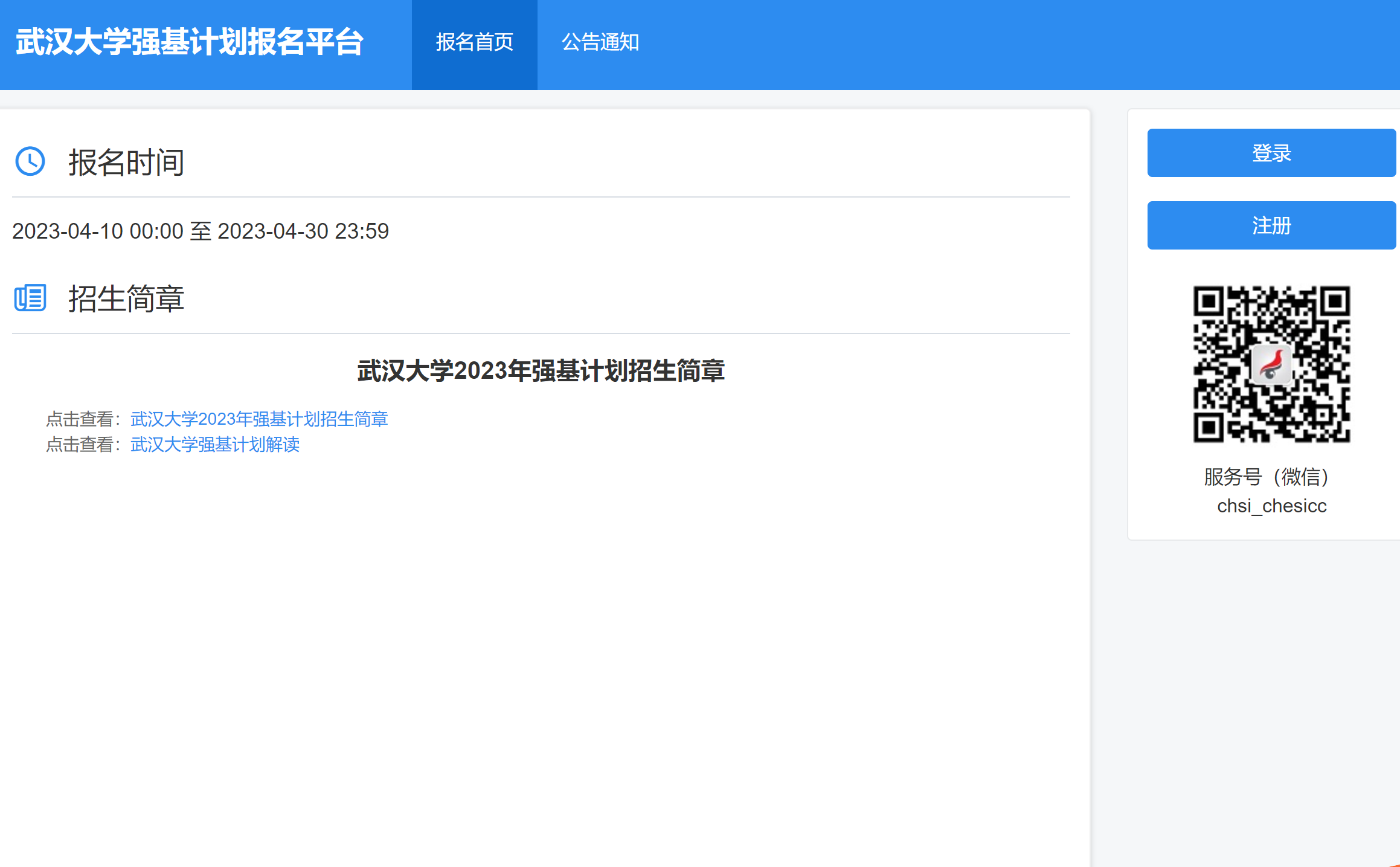 近日,武汉大学2023年强基计划招生简章发布,以下是2023年武汉大学强基计划报名时间及报名入口: