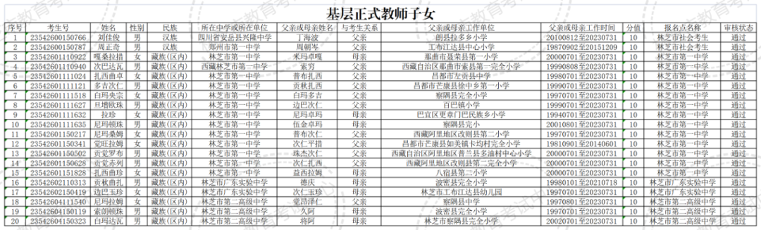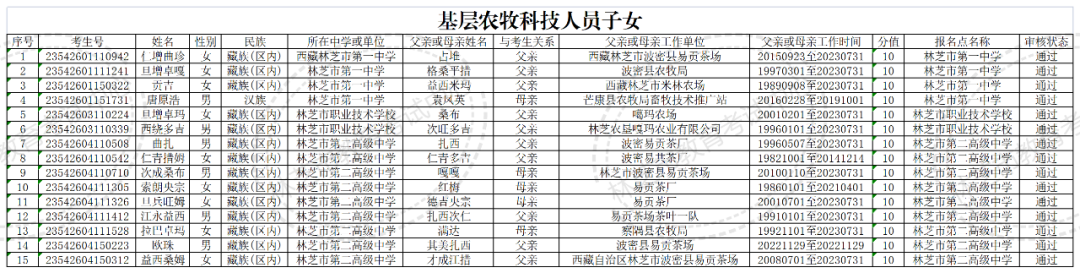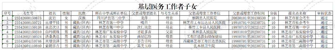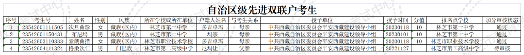 温馨提示:2023年高考进入倒计时,点击下载掌上高考app,获取各省历年真题、真题答案、详细解析。查分数、查专业、一键填报志愿。助力高考,金榜题名!根据《西藏自治区人民政府批转教育厅等部门关于减少和规范高考加分项目和分值实施意见的通知》(藏政发〔2015〕32号)文件精神及《关于做好西藏自治区2023年普通高校招生工作的通知》(藏教厅〔2023〕57号)文件要求,现将我市符合西藏自治区2023年普通高考照顾政策的考生第一次公示如下,公示期从2023年4月26日至2023年5月5日,公示期间,敬请监督。联系