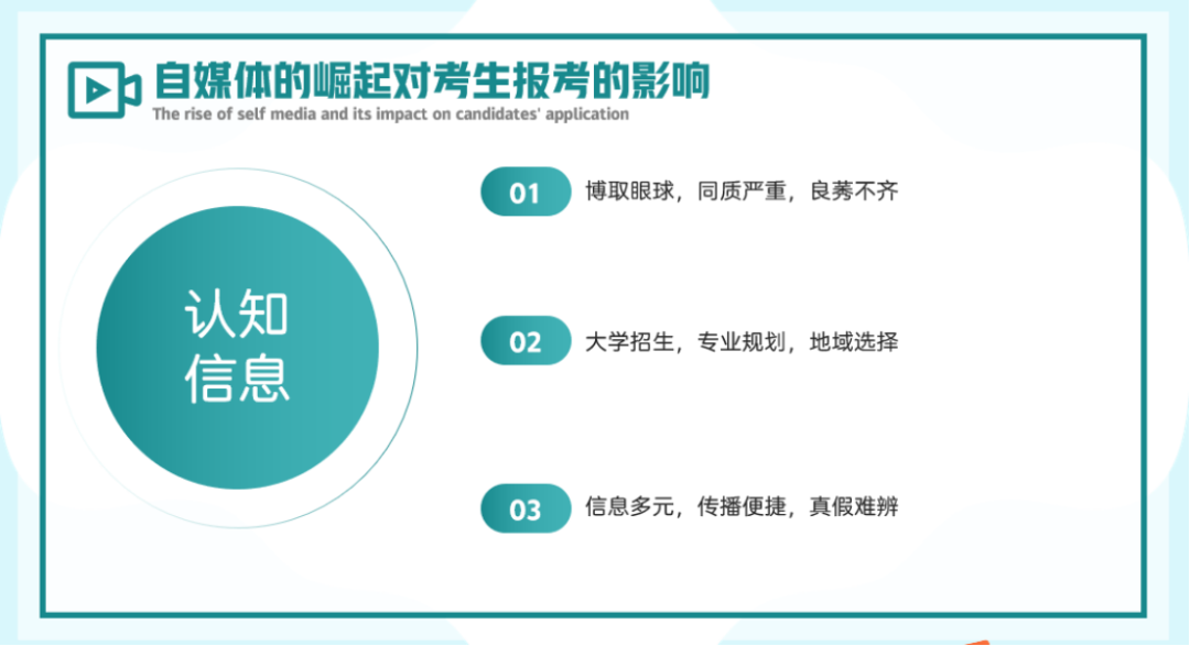 因此,游老师认为,各战线的报考工作人员首先应对时下“流行”的自媒体平台资讯有一定的了解,同时,也要判断好考生和家长是否有报考中的认知误区,不应把流量高的“网红言论”作为报考常识。