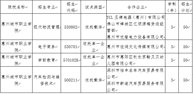 惠州城市职业学院 2023年高职自主招生( 含现代学徒制)招生简章(学院代码:14510)