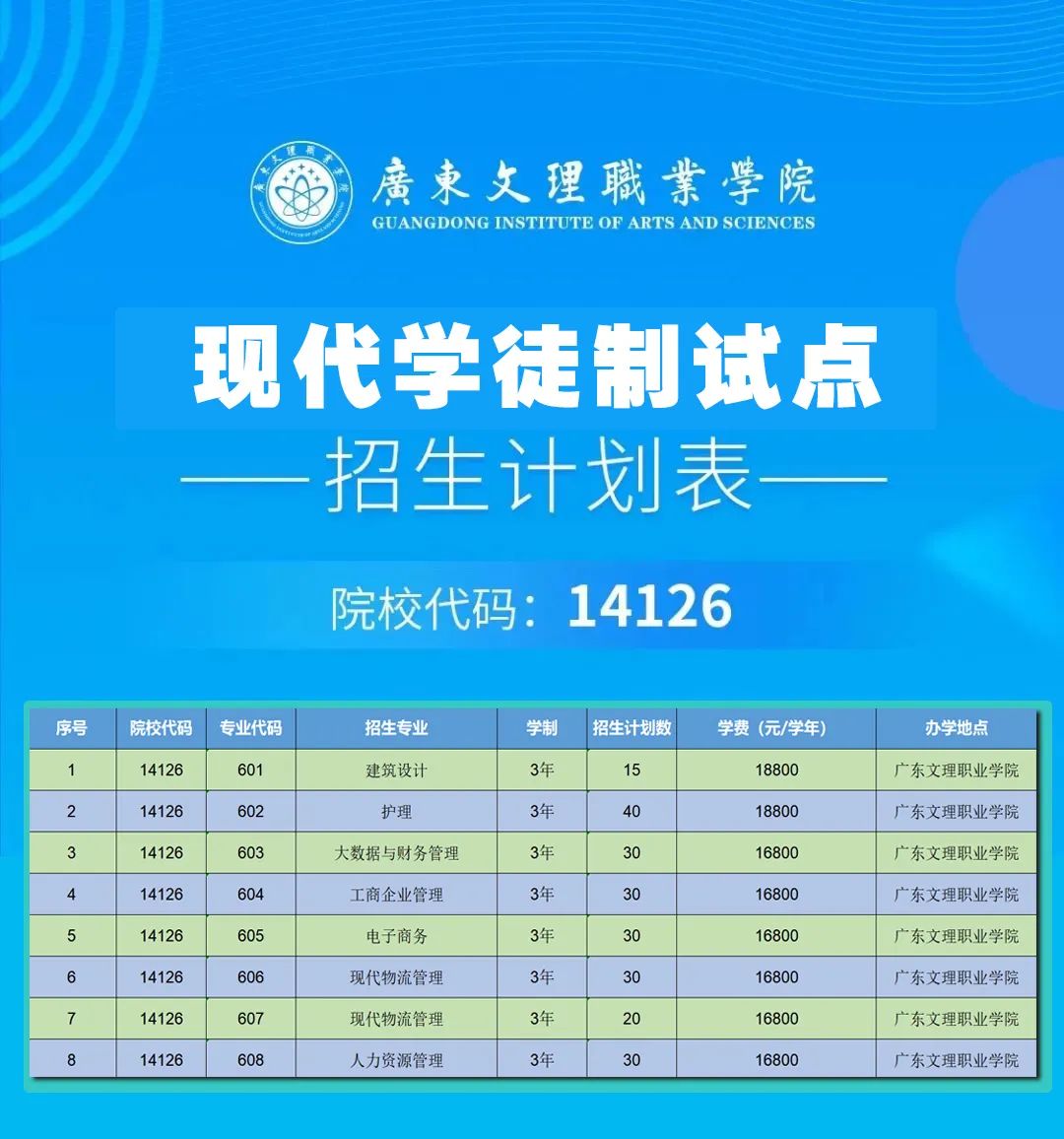 经广东省教育厅正式批复,我校2023年现代学徒制招生专业及相关要求如下表所示。