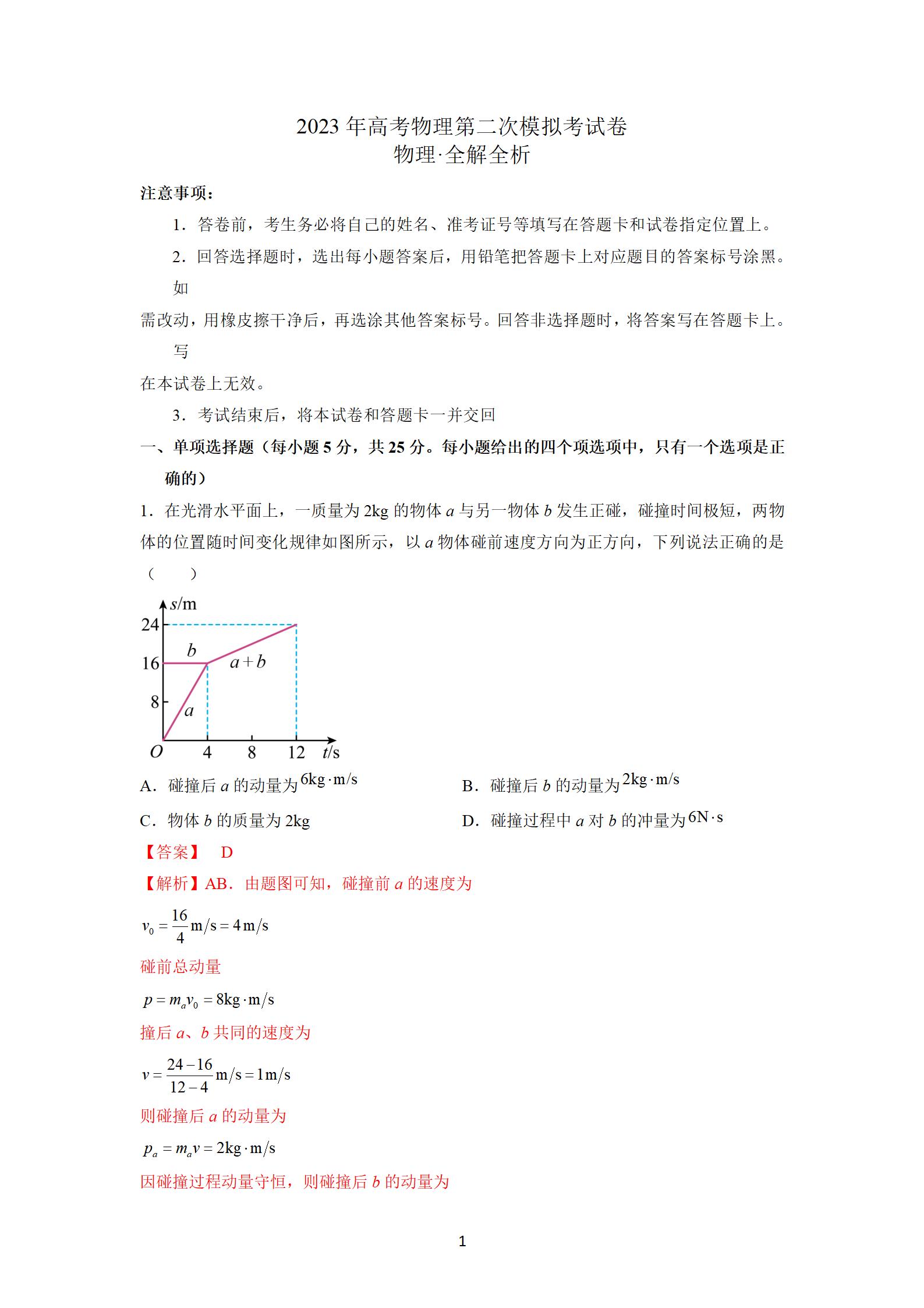 温馨提示:2023年高考进入倒计时,复习备考,点击下载「2009-2022历年真题」,助力高考,金榜题名!2023年高考天津第二次模拟考试已考完,掌上高考为考生整理2023年高考天津物理第二次模拟试题,供大家查看:物理(天津A卷)(考试版)_01