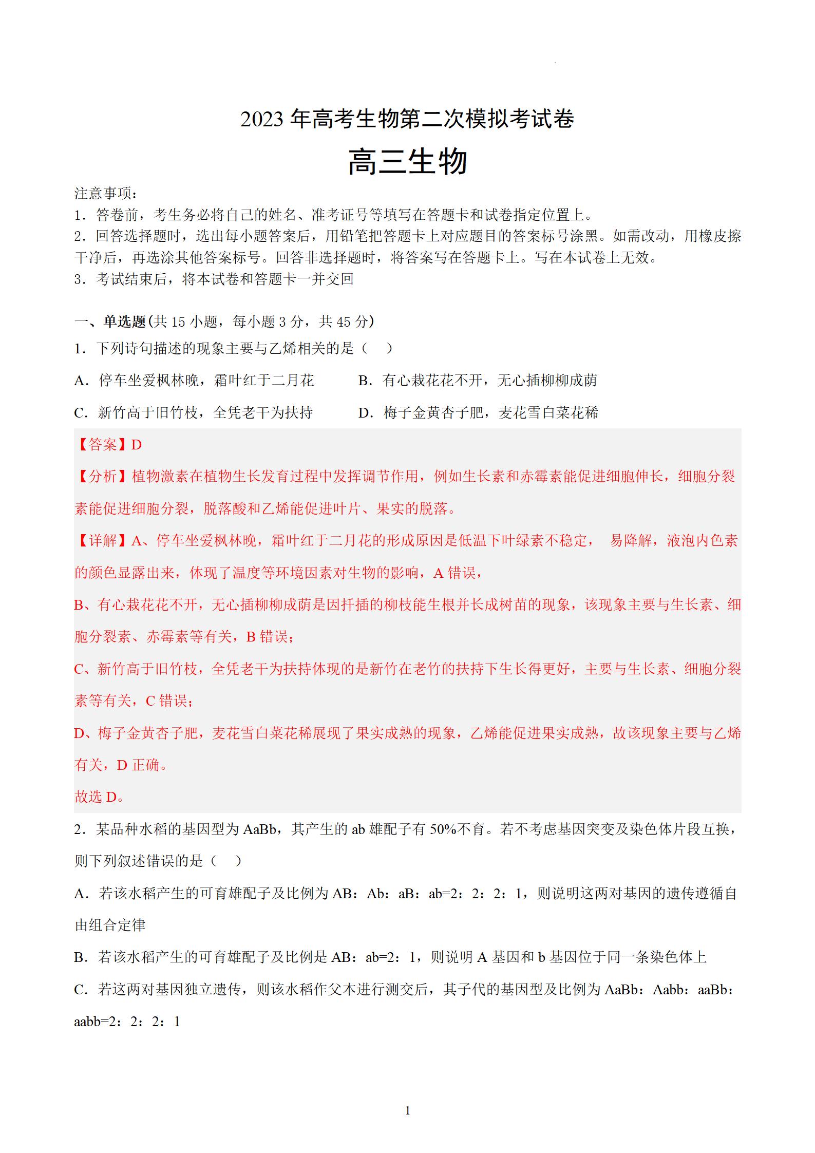 2023年高考重庆第二次模拟考试已考完,掌上高考为考生整理2023年高考重庆生物第二次模拟试题,供大家查看: