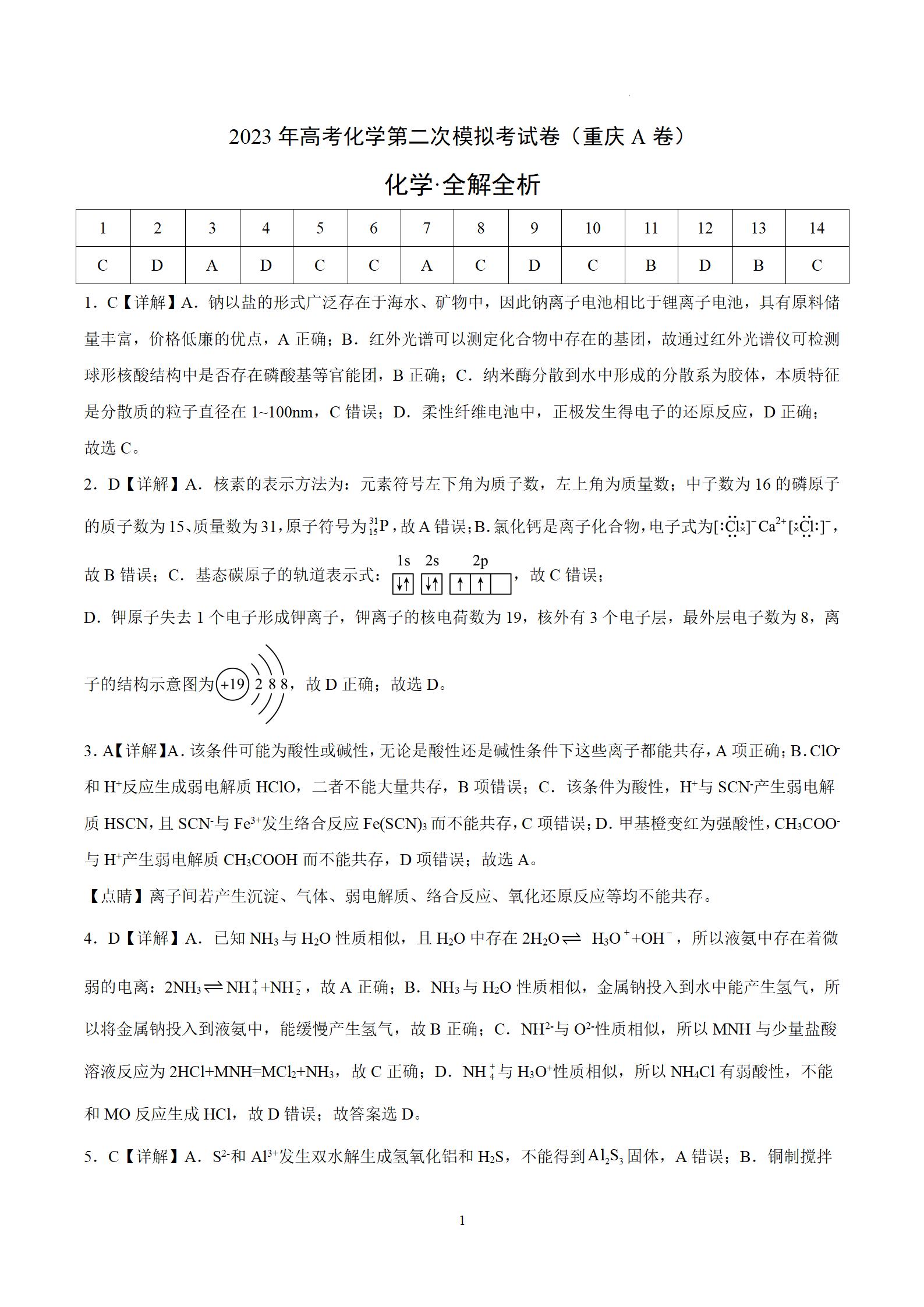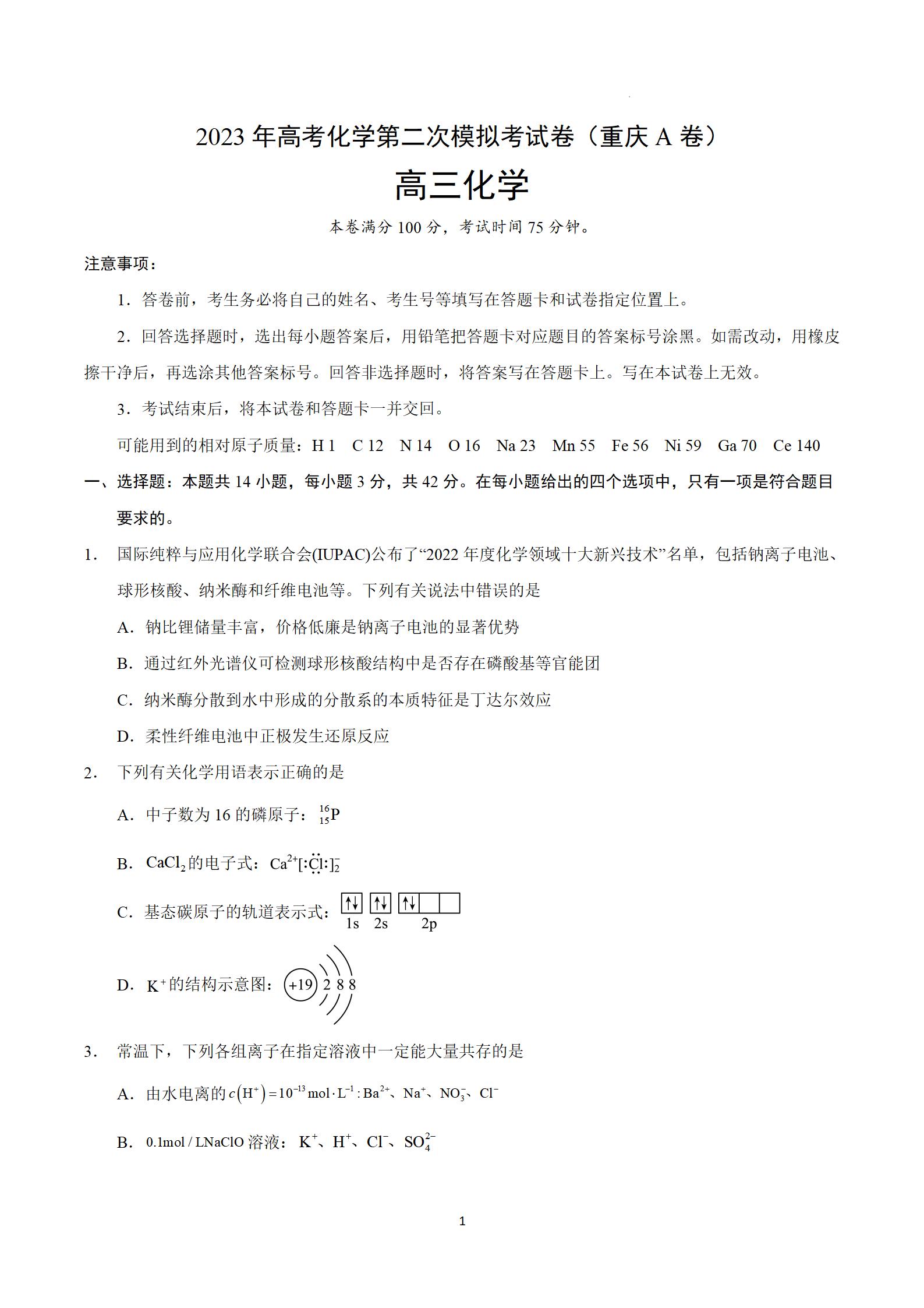 想要查看能上哪些大学?却不懂志愿填报?掌上高考人工智能帮你选!点击此处,一键填报!更快了解冲、稳、保院校名单!2023年高考重庆第二次模拟考试已考完,掌上高考为考生整理2023年高考重庆化学第二次模拟试题,供大家查看:化学(重庆A卷)(考试版)_01