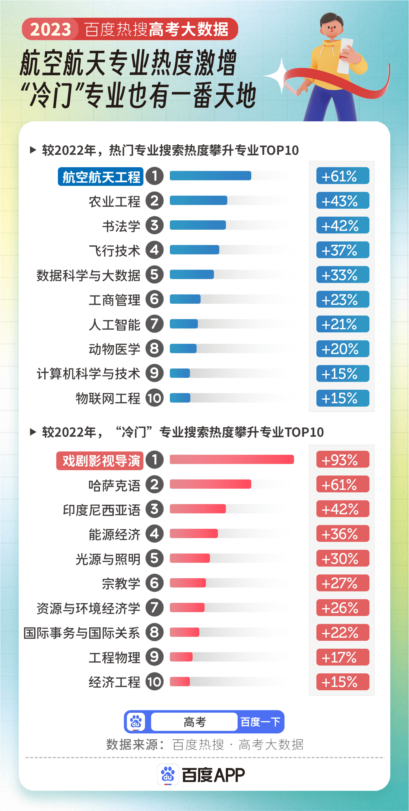 百度发布2023高考大数据:医学专业搜索热度最高,航空航天热度攀升最快