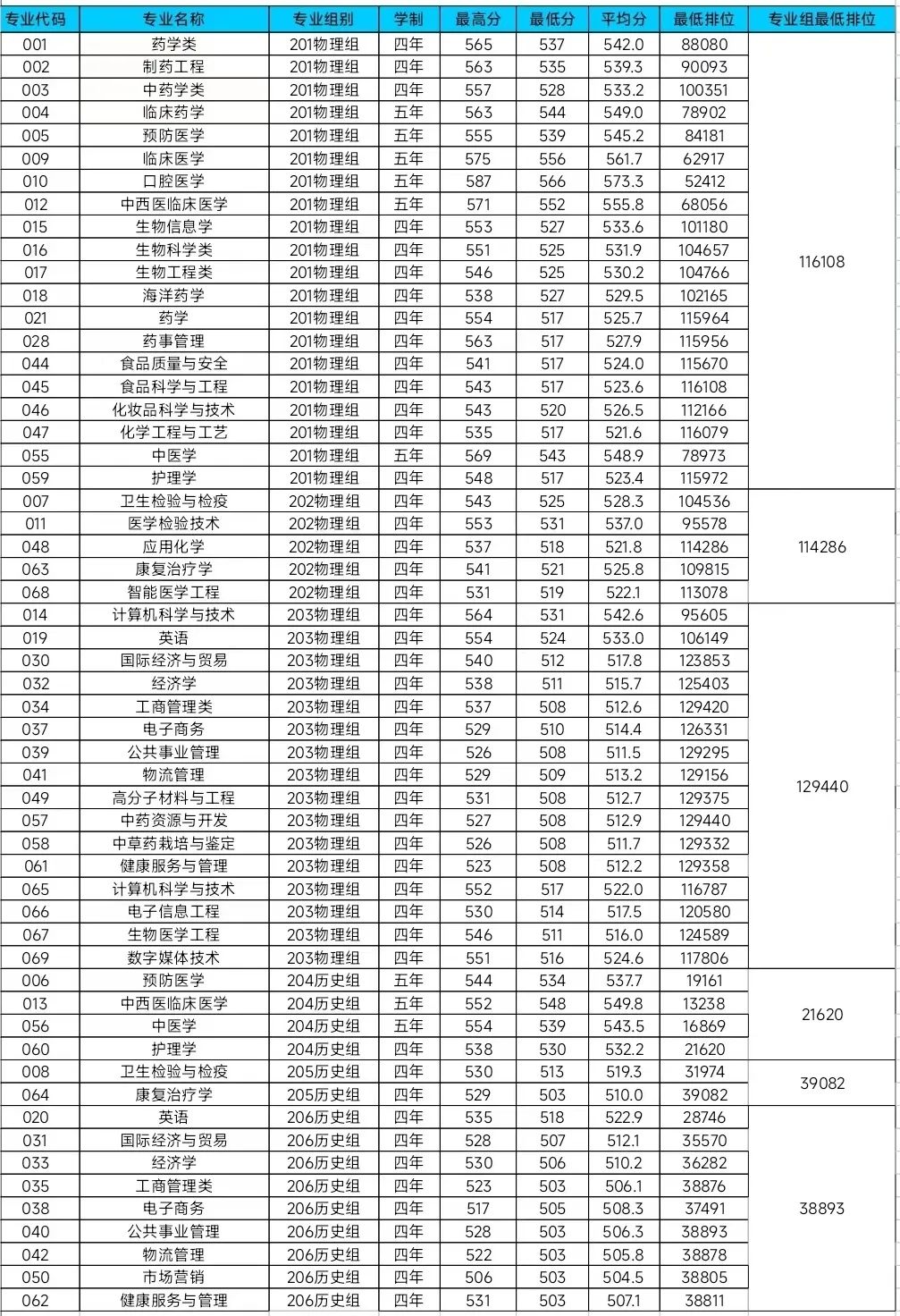 广东药科大学2021年全国24个省(区、市)录取分数线