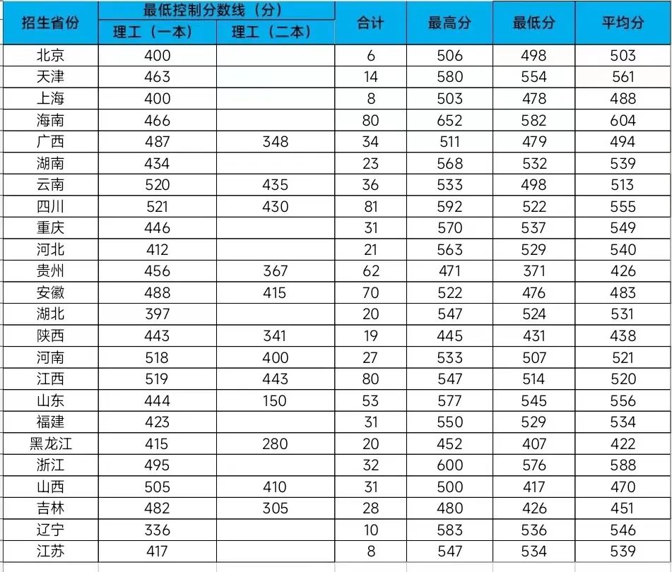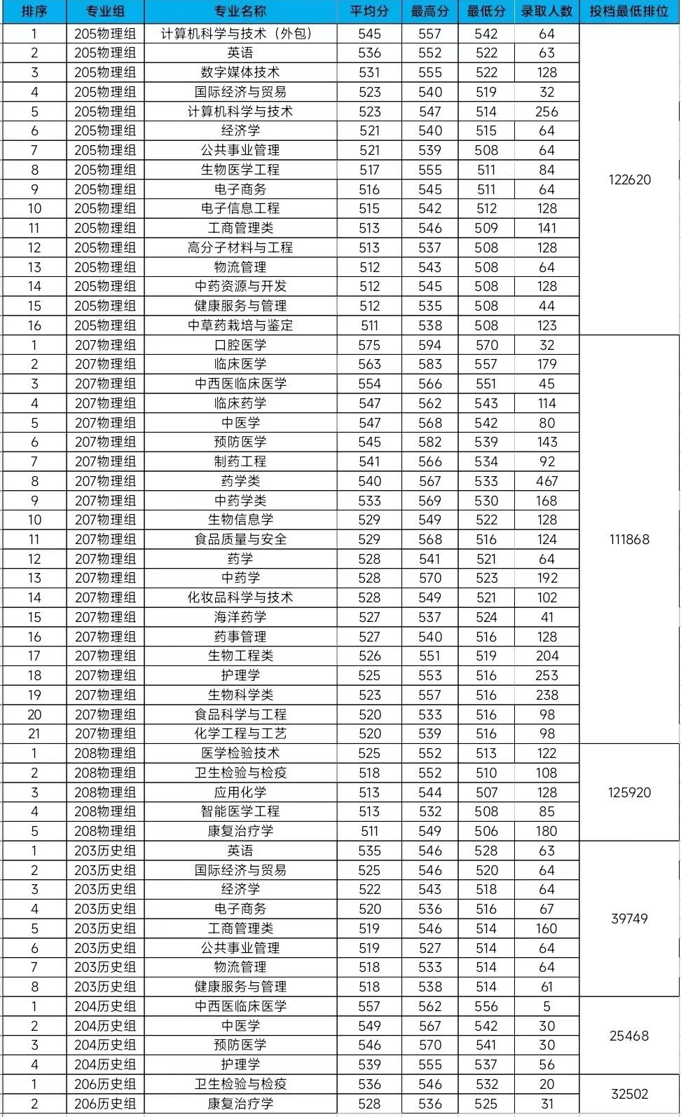 广东药科大学2022年全国24个省(区、市)录取分数线