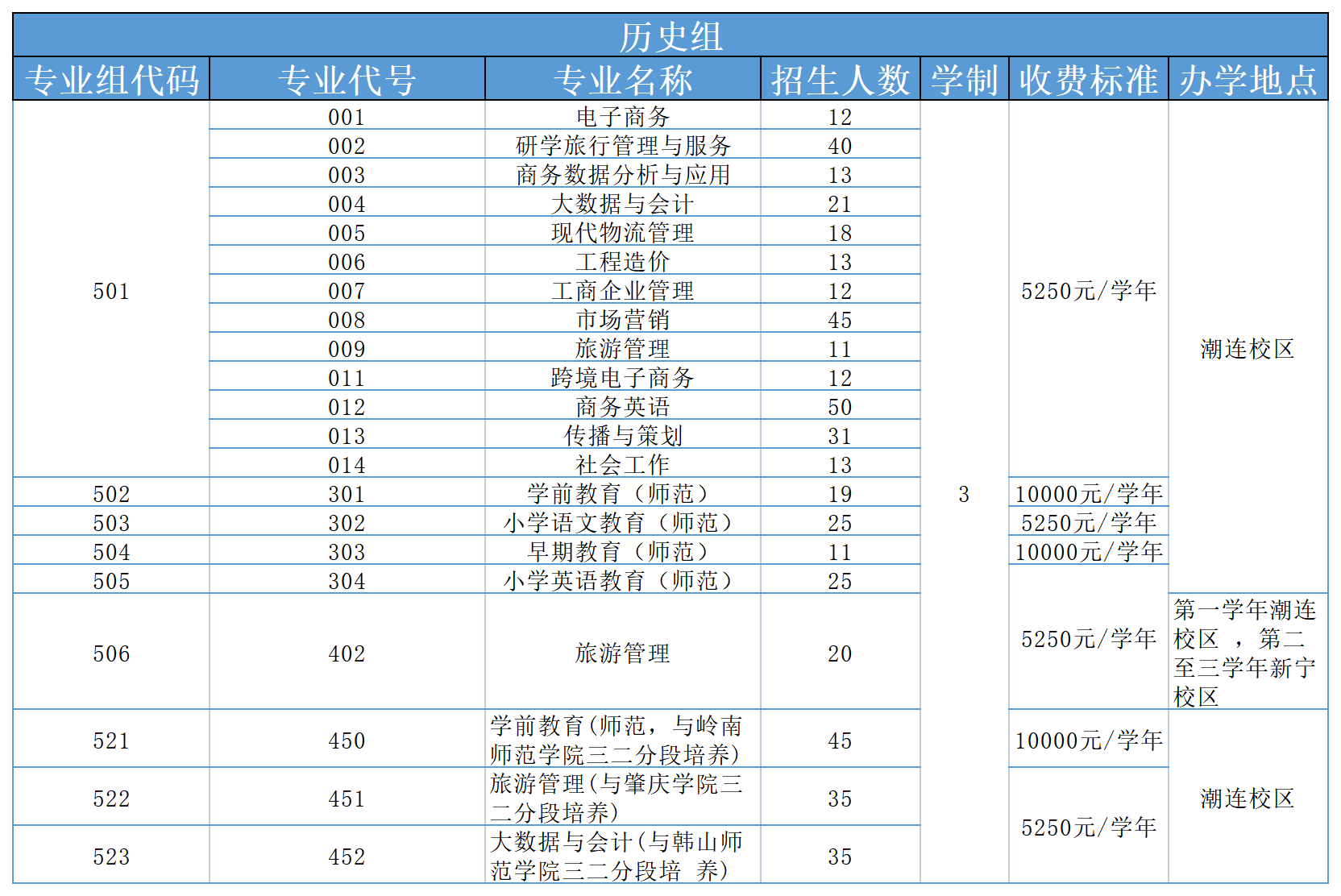 除了旅游管理(新宁学院)、机电一体化技术(新宁学院)专业,其他专业学生均在潮连校区(本校区)就读。