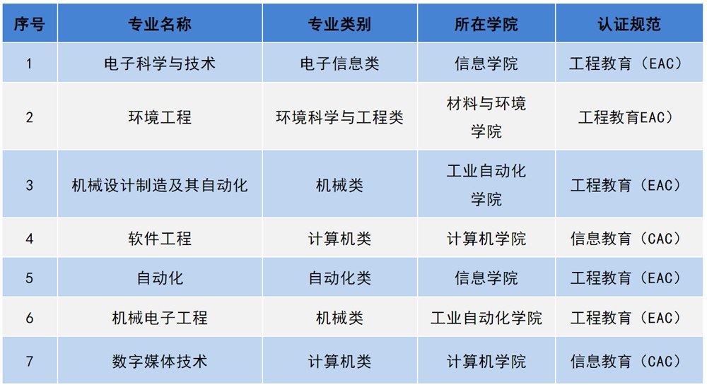 IEET工程及科技教育认证专业一览表