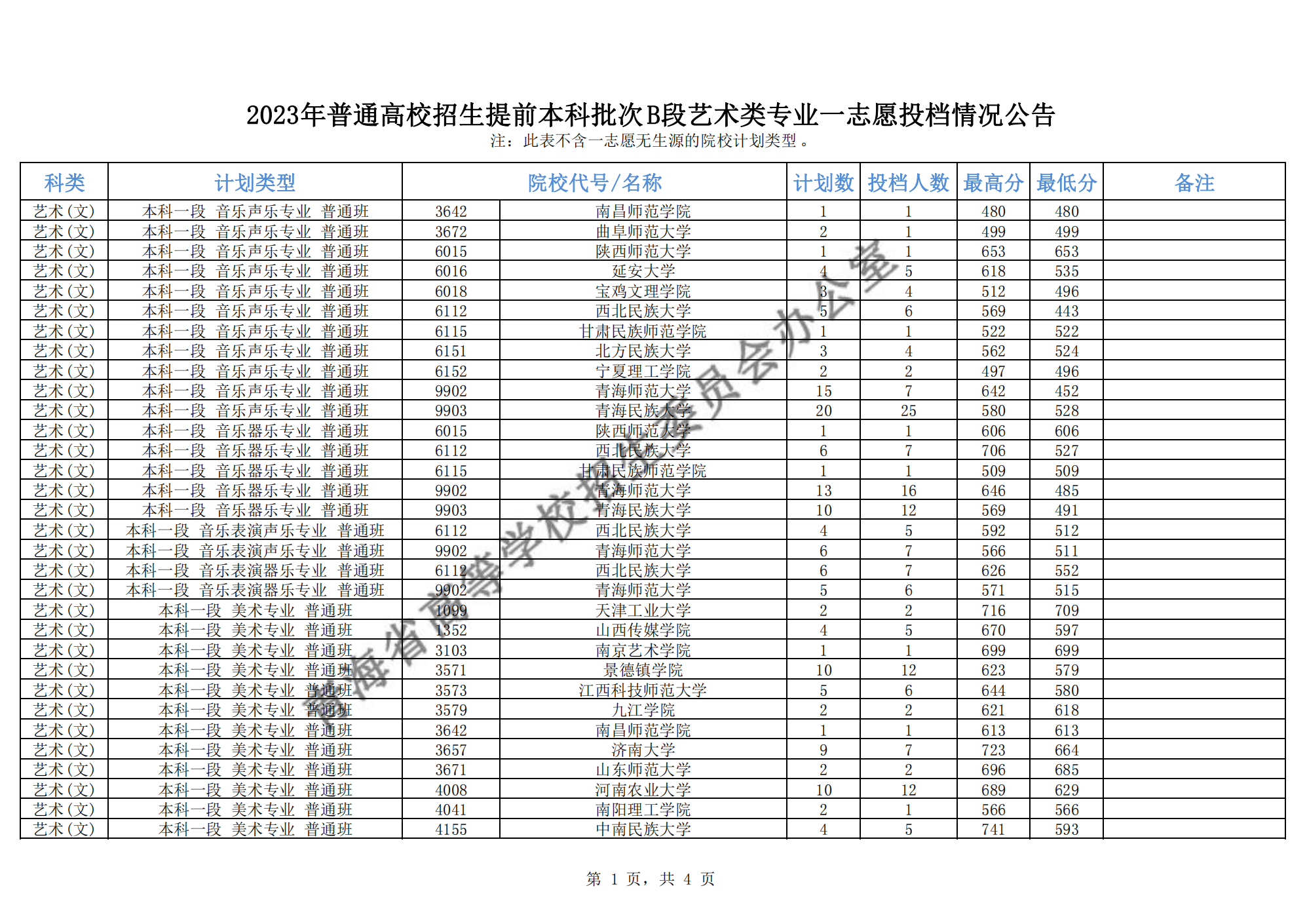 - 青海2023年高招提前本科批次B段艺术类二志愿投档情况
