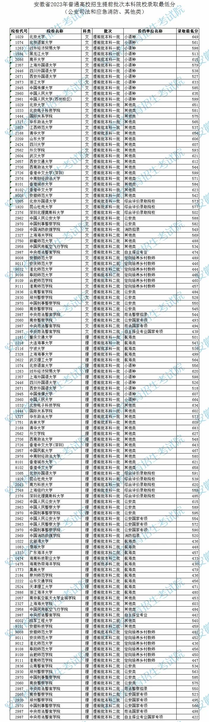 - 安徽2023年提前批次本科院校非平行志愿录取最低分(公安司法消防)