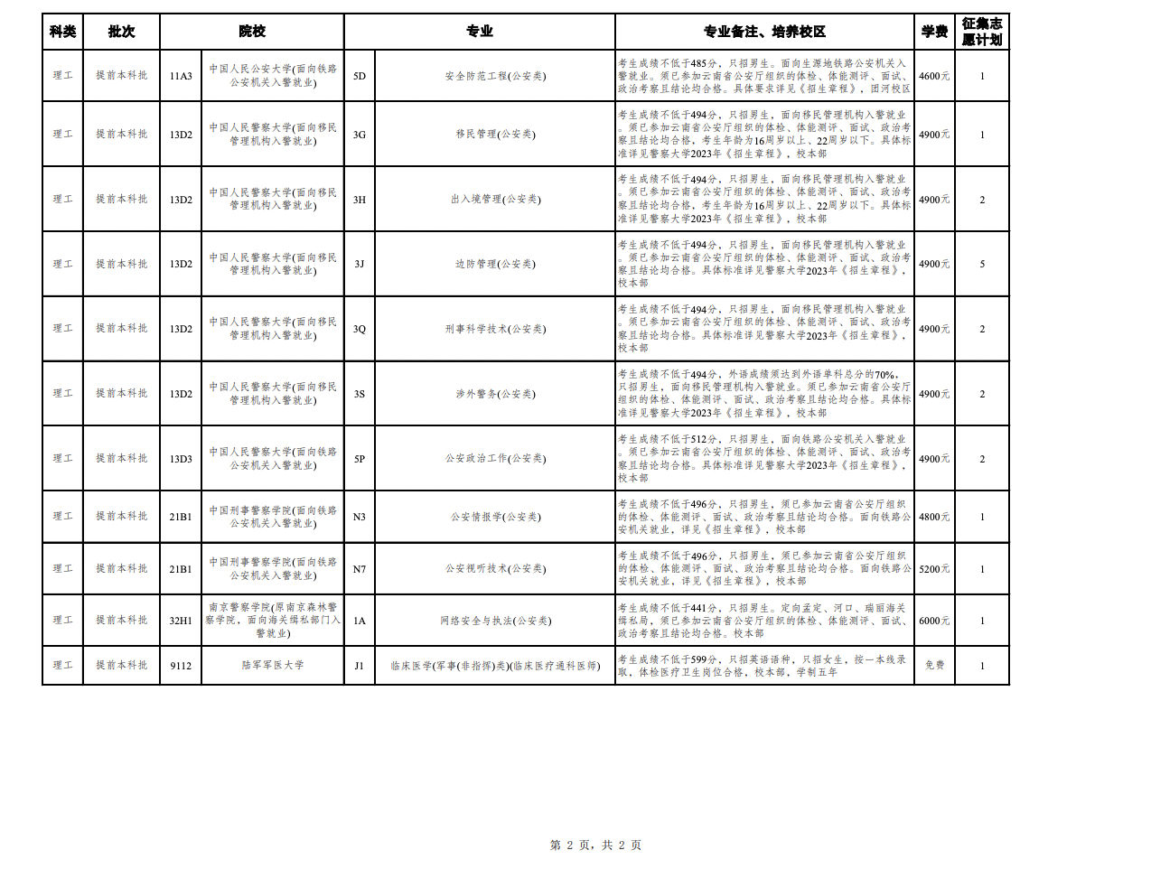 提前本科批公安院校公安专业:不低于2023年公安院校公安专业在滇招生体检、体能测评和面试最低分数线(详见https://www.ynzs.cn/html/content/4847.html)。