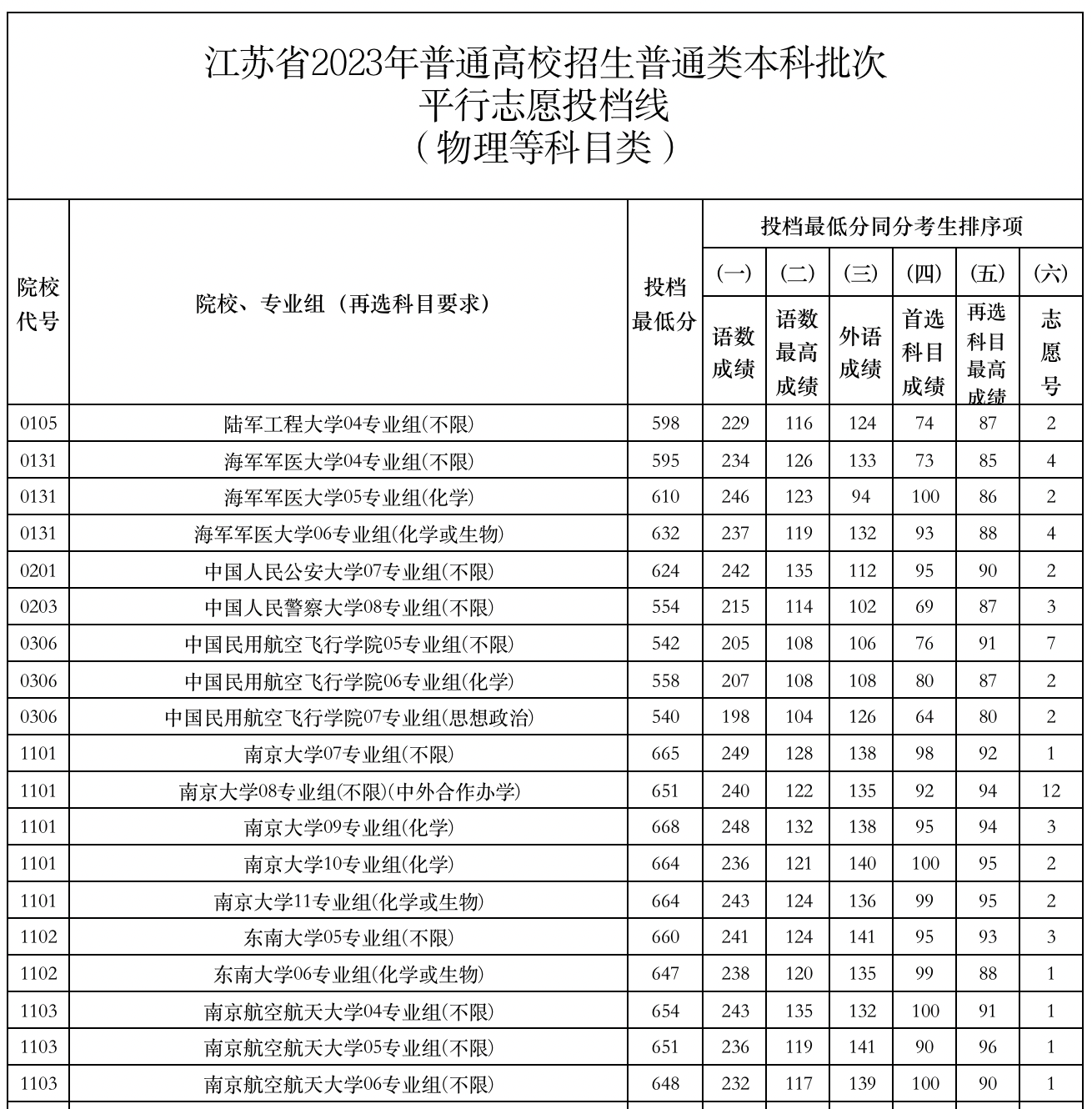 江苏省2023年普通类本科批次平行志愿投档线公布!(物理等科目类) 点击查看物理类完整版投档分数线