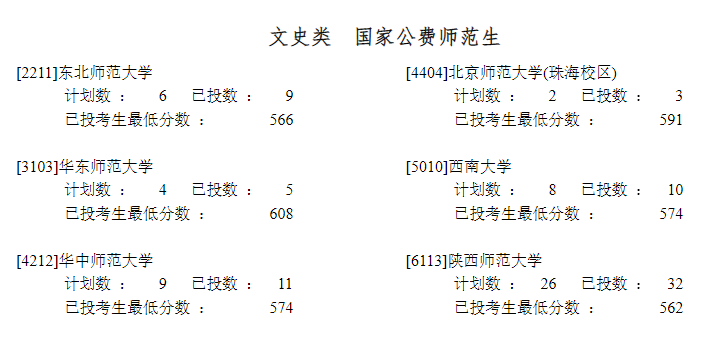 东北师范大学(公费师范生)