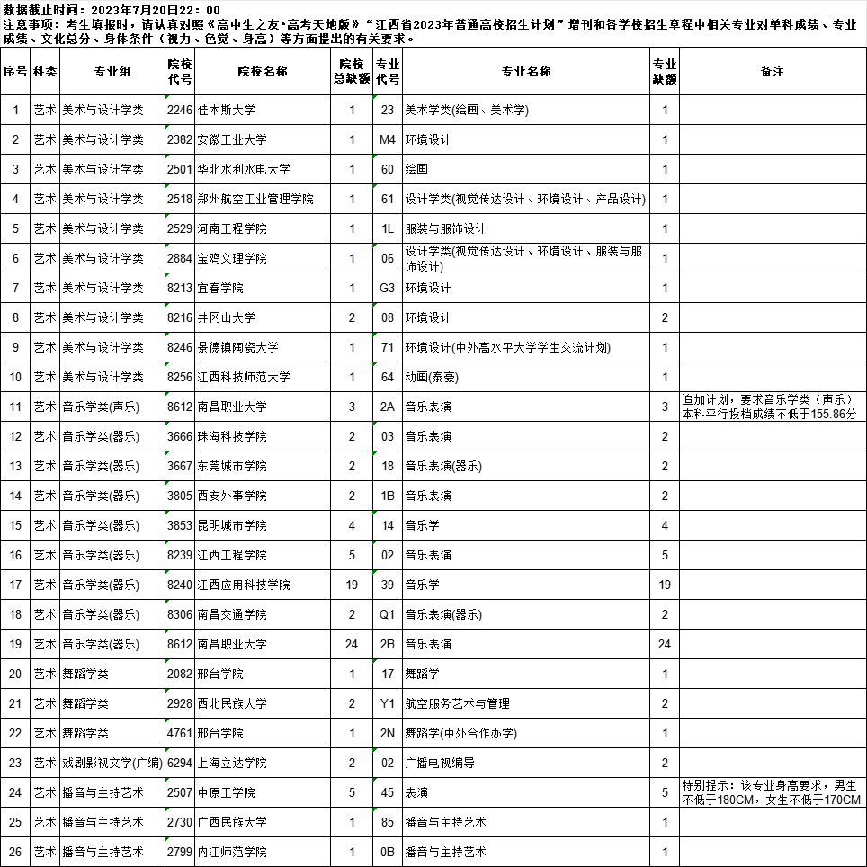 您现在的位置是:首页 > 学历教育 > 高考动态 高考动态 江西2023年高招艺术本科平行志愿缺额院校及专业统计表 温馨提示 金榜题名 志愿 2023-07-21 14:22:41高考动态 温馨提示:模拟志愿填报用掌上高考,一键生成“冲-稳-保”志愿。点击此处,开始精准填报吧! & 下载新生资料包(提前布局大学规划)江西省2023年普通高校招生艺术本科平行志愿缺额院校及专业统计表公布 温馨提示:模拟志愿填报用掌上高考,一键生成“冲-稳-保”志愿。点击此处,开始精准填报吧! & 下载新生资料包(提前布局大学规划) 江西省2023年普通高校招生艺术本科平行志愿缺额院校及专业统计表公布 ◐◐◐◐●☛█▼▲东方金报网███████东方金报http://www.dfjb.net▼▲▼▲▼▲▼▲▼●●●●●●●▼▲▼▲▼▲ 很赞哦! () 扫描关注成功教育网微信公众号,第一时间获取成功教育网更新动态 转载请说明来源于"成功教育网" 本文地址:https://www.succedu.com/jiaoyuzixun/gaokaozhengce/66164.html 上一篇 2023年北京市美术类考生专科综合分分数分布 温馨提示:模拟志愿填报用掌上高考,一键生成“冲-稳-保”志愿。点击此处,开始精准填报吧! & 下载新生资料包(提前布局大学规划)2023年北京市美术类考生专科综合分分数分布情况公布,以下是详细内容:2023年北京市美术类考生专科综合分分数分布分数本段人数累计人数3161130812302243011529827297182963112951122911132901142881152872172851182841192835242825292803322796382785432771442751452743 相关文章 江西:7月21日9时-15时,缺额院校网上征集志愿(附缺额院校及专业统计表)辽宁2023年高招艺术类本科第一阶段“征集志愿”投档最低分辽宁2023年高招体育本科(历史)“征集志愿”投档最低分宁夏2023年高考一本征集志愿时间及缺额计划天津2023年高招本科批A段各院校专业组平行志愿录取最低分吉林2023高考征集志愿的院校名单|吉林高考征集志愿学校有哪些?山东2023年高考普通类常规批第1次志愿共投出考生236954人2023四川高考征集志愿填报时间各批次汇总(含院校名单)2023湖北高考征集志愿填报时间各批次汇总(含院校名单)黑龙江2023年高考本科一批录取院校A段征集志愿预计7月22日开始 文章评论