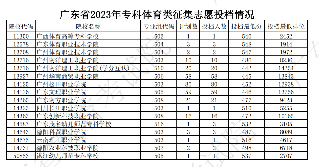 温馨提示:模拟志愿填报用掌上高考,一键生成“冲-稳-保”志愿。点击此处,开始精准填报吧! & 下载新生资料包(提前布局大学规划)8月8日,广东省2023年普通高考专科批次征集志愿正式投档,共投出考生2753人。其中,普通类(历史)809人,普通类(物理)1329人,体育类(统考)281人,美术类(统考)121人,音乐类(统考)100人,广播电视编导类(统考)60人,播音与主持类(统考)53人。相关录取工作将于今天结束,9日考生可查询到录取结果。广东省2023年普通高校招生各批次录取工作至此全部顺利结束。播
