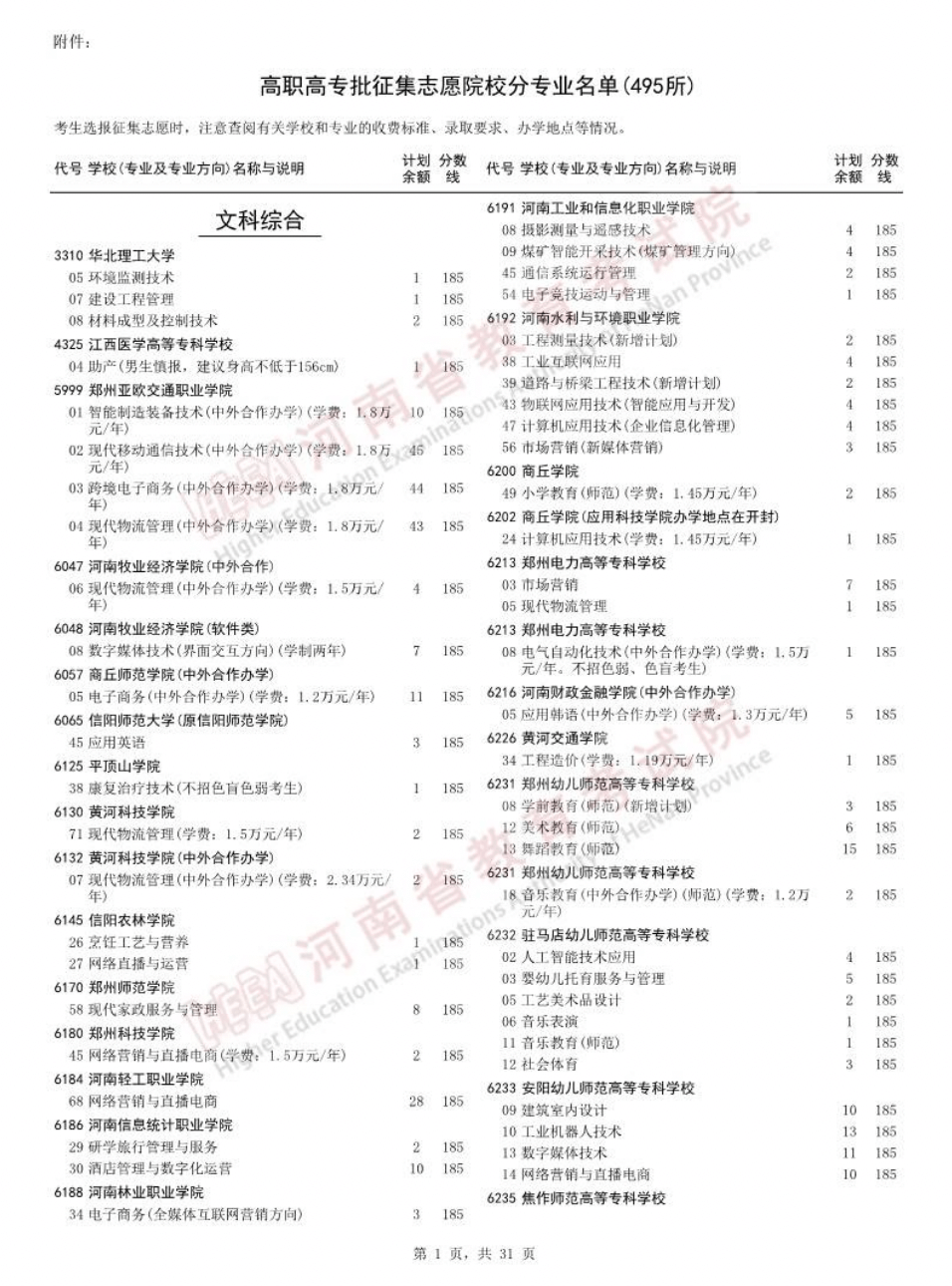 河南2023年高招高职高专征集志愿8月14日开始填报