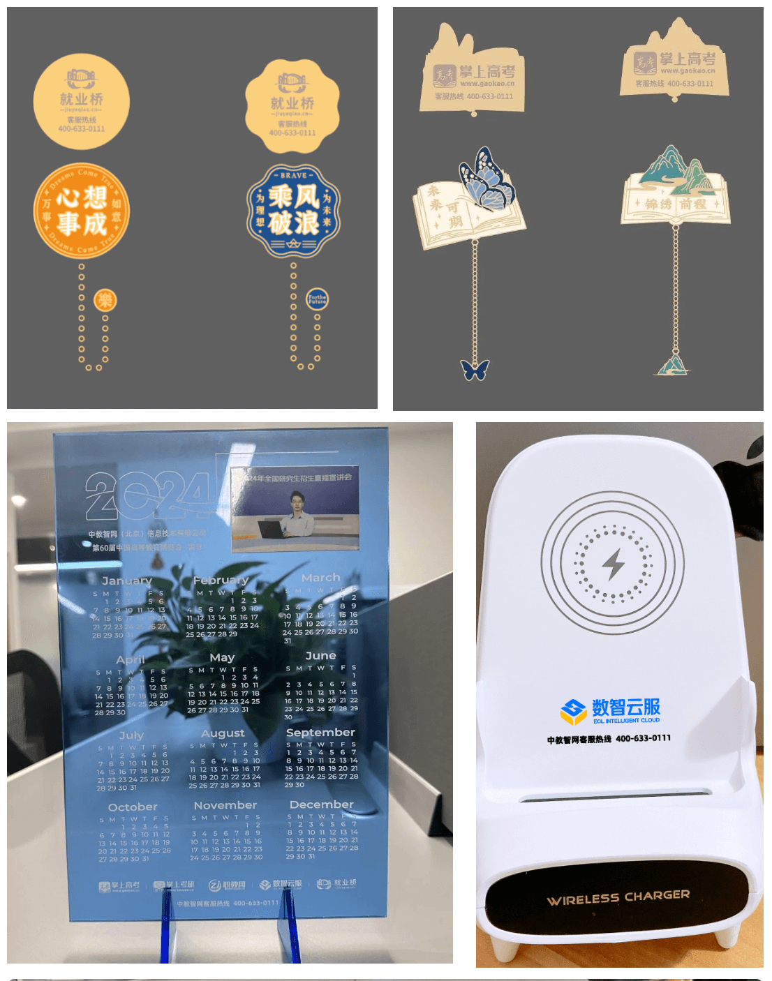 在展厅现场,我们精心准备了丰富多样的伴手礼。高校老师仅需要在现场参与简单互动,即可获得包括定制日历、书签、抱枕、手机充电支架、水杯、鼠标垫、停车牌以及炫彩镭射手提袋等伴手礼。