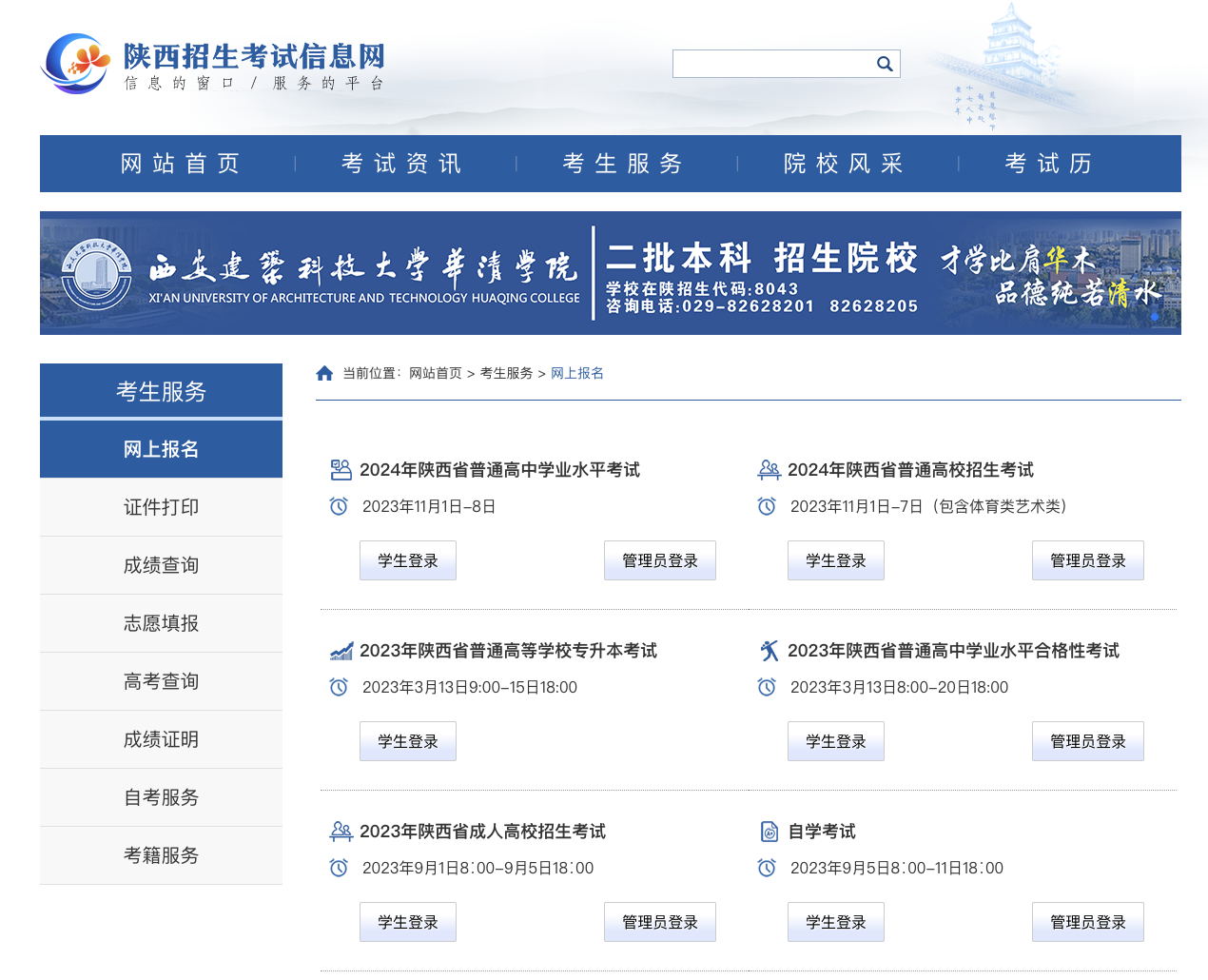 - 陕西2024年普通高考报名官方入口:陕西省教育考试院