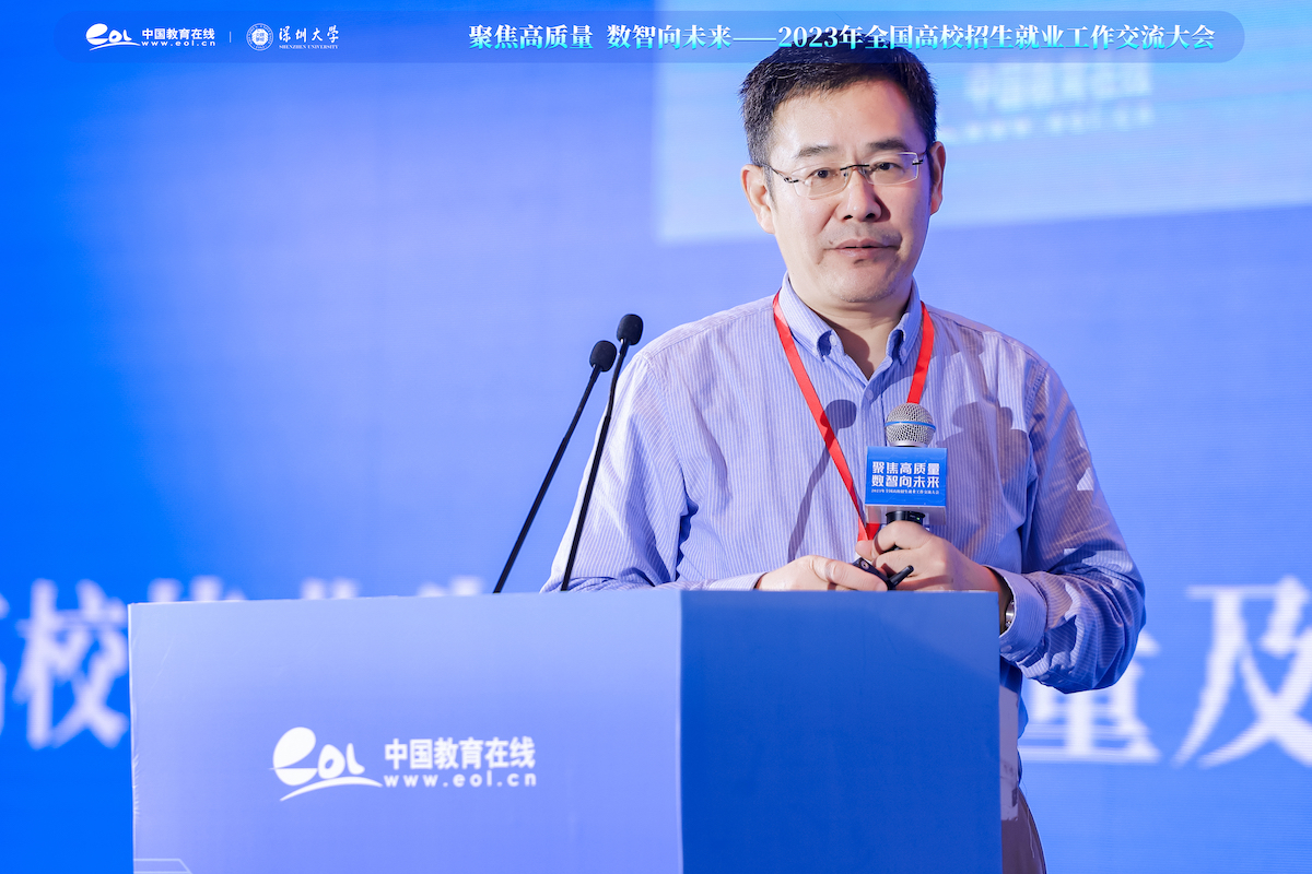 11月2日,由中国教育在线与深圳大学联合举办的“聚焦高质量,数智向未来—2023年全国高校招生就业工作交流大会”在深圳成功举办。广东省教育考试院党委书记、院长欧阳谦,深圳大学副校长张晓红,中国教育在线总编辑陈志文,中国人民大学教育学院院长、评价研究中心主任周光礼,西安交通大学二级教授、博士生导师、中国西部高等教育评估中心主任陆根书以及全国普通高校毕业生就业创业指导委员会副主任委员、阿里巴巴集团副总裁邢悦等出席活动。来自各省市教育招生主管部门领导、国内600余所高校的招生、就业负责人,以及教育界专家学者等1200余名嘉宾参加本次大会。