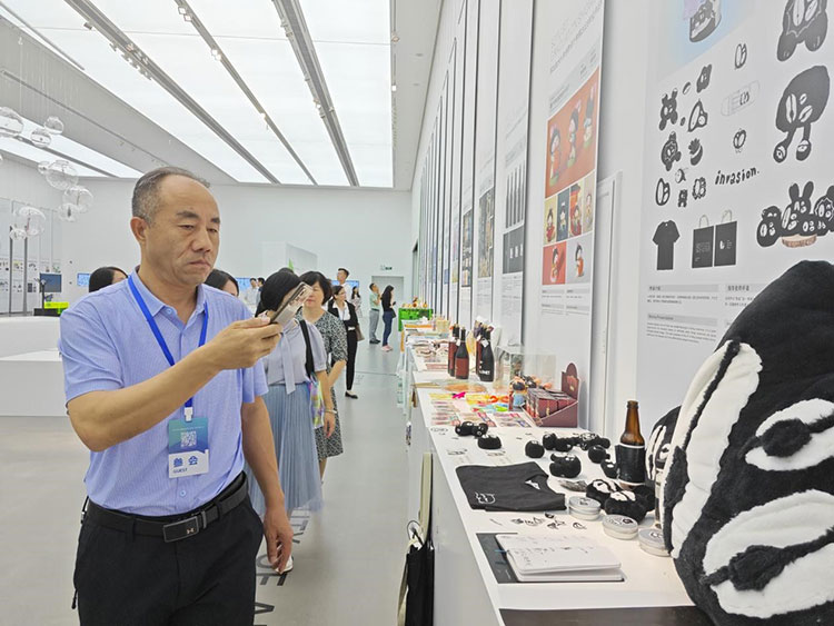 第一站,老师们来到了创意设计学院,这里展出了2023毕业作品展,作品集合了创意设计学院、商学院、聚龙学院工业设计专业2023届本科毕业生及联合培养硕士生的毕业设计、创作和研究。