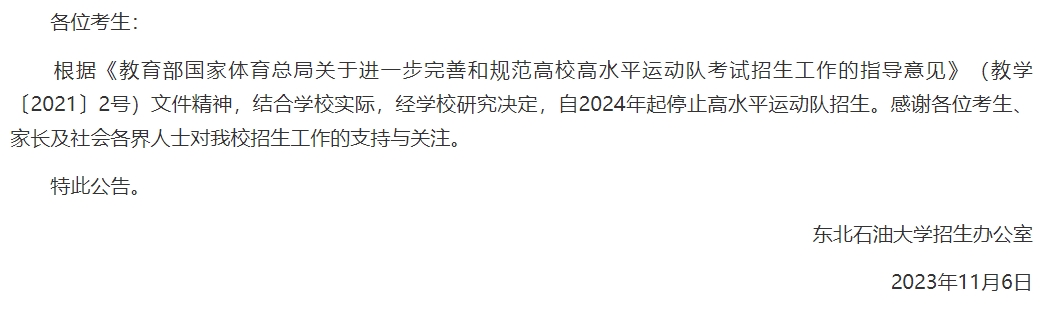部分院校陆续发布高水平运动队停止招生的公告,小编在此为大家做个汇总,便于24考生参考。