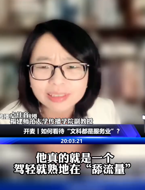 福建师范大学传播学院副教授卢佳音评价其“舔流量”驾轻就熟,是典型表演艺术家。