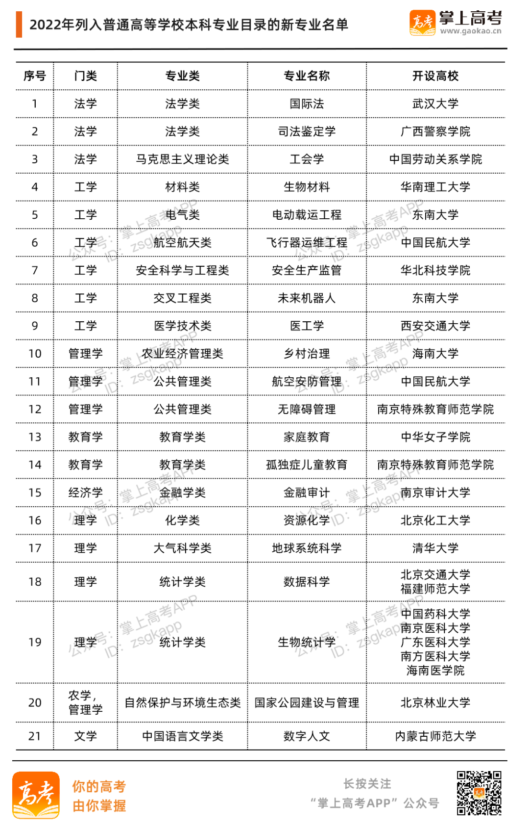 今年4月,教育部最新发布《关于公布2022年度普通高等学校本科专业备案和审批结果的通知》,列入目录的新专业共计21种。