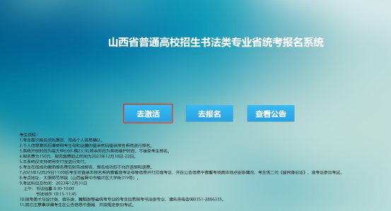 4.考生如果首次登录报名系统,需先激活完成个人信息确认。具体方法:点击报名系统首页“去激活”按钮进入激活页面。