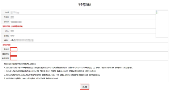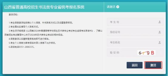 5.按要求输入正确的考生号、身份证号、姓名、验证码后点击右下角“激活”按钮进入考生信息确认页面。