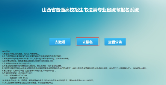 7.激活完成后考生即可登录系统完成报名(注:仅首次登录需要激活,之后再次登录系统无需激活)。登录系统方法:点击系统首页“去报名”按钮进入登录页面。