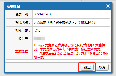 12.缴费完成后返回系统查看缴费状态,如缴费完成后系统仍显示未交费,请耐心等待后台更新缴费结果,点击“刷新”按钮再次查看缴费状态,若仍未正确显示缴费情况可致电0351-2886335。缴费成功后即完成报名。