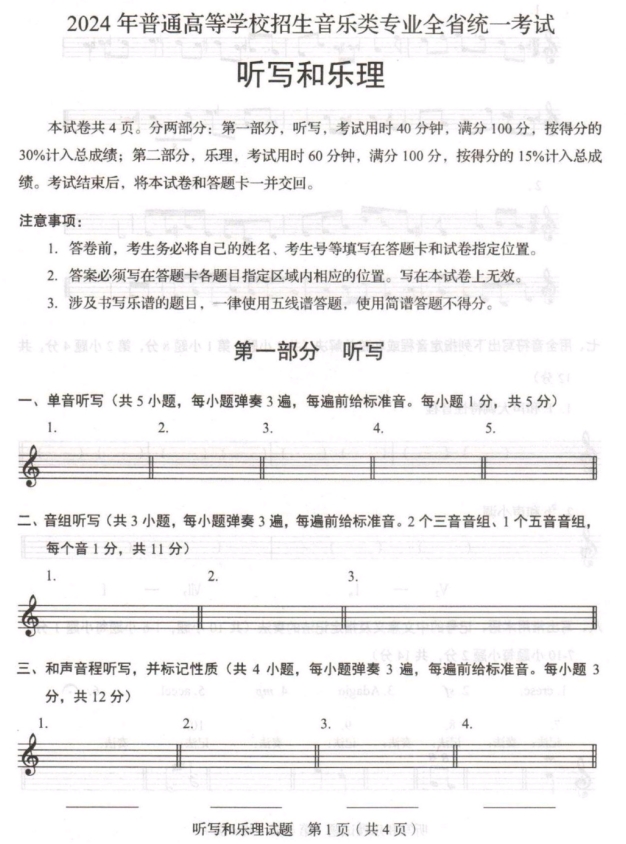 音乐类:听写和乐理