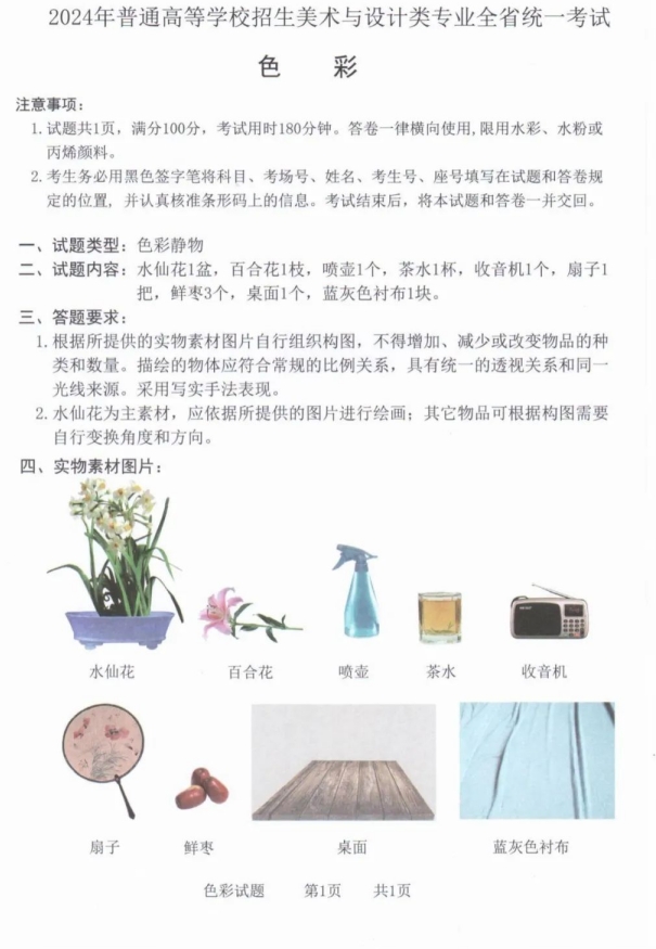 山东2024艺术类专业统考试题公布! —掌上高考—中国教育在线