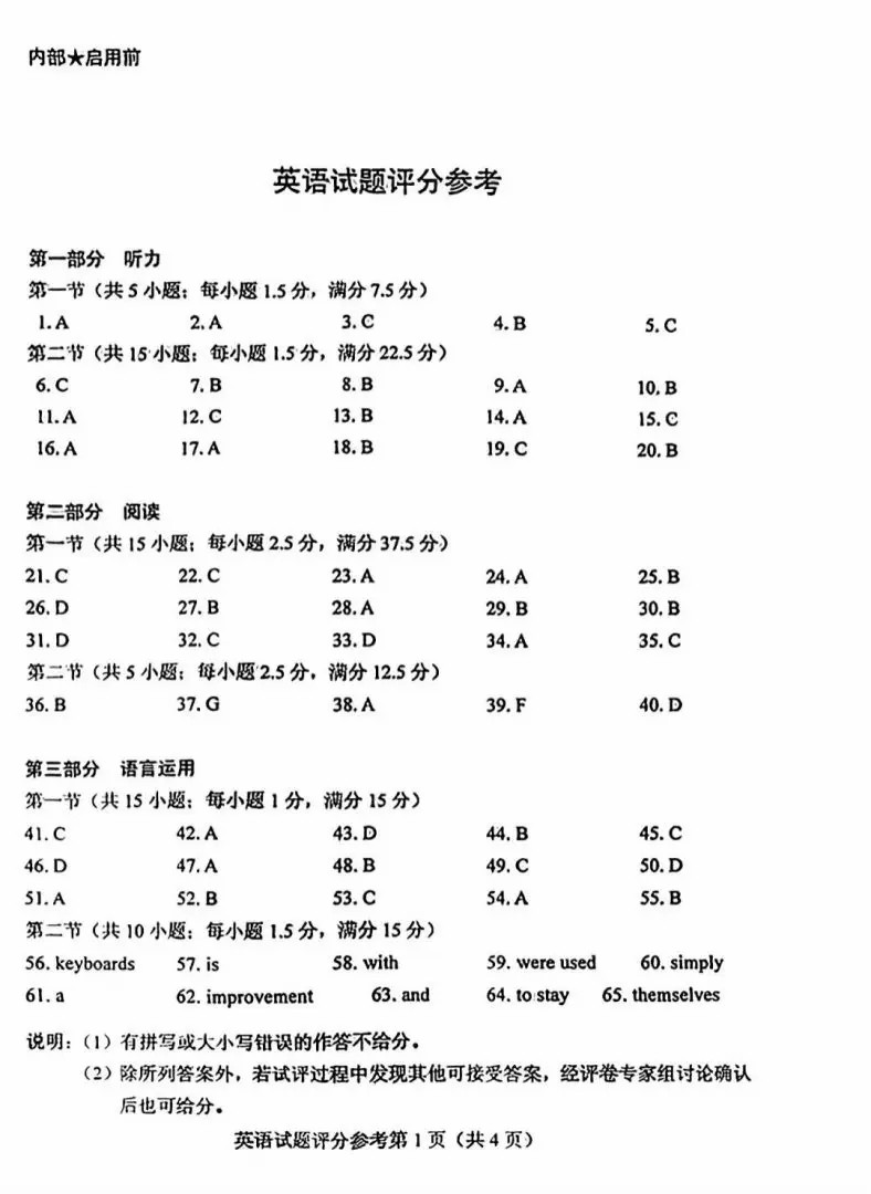2024年新高考九省联考英语答案 —掌上高考—中国教育在线