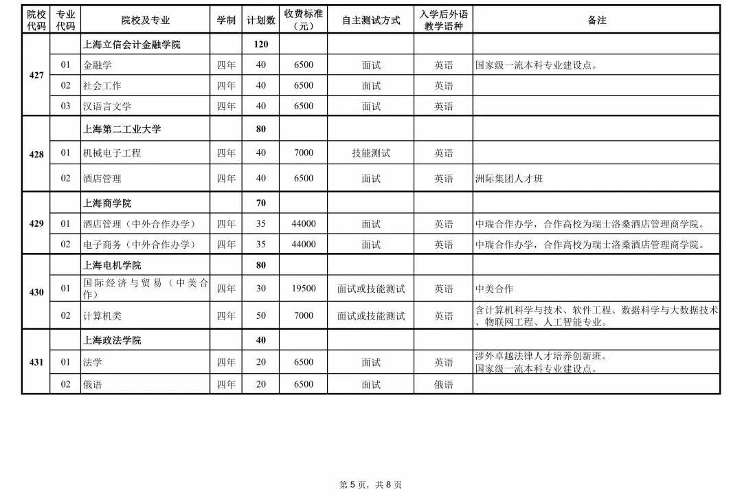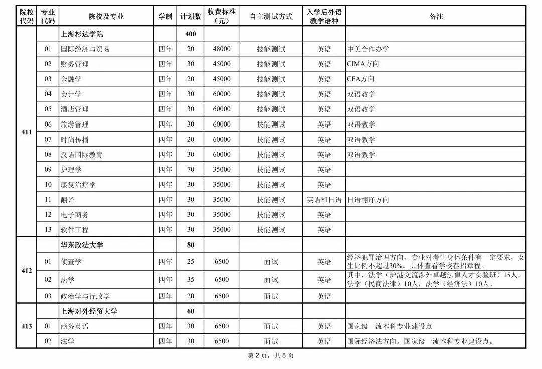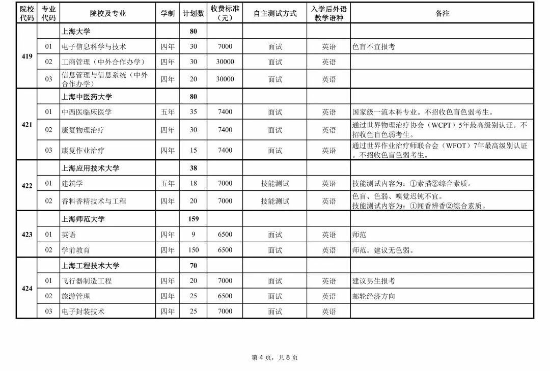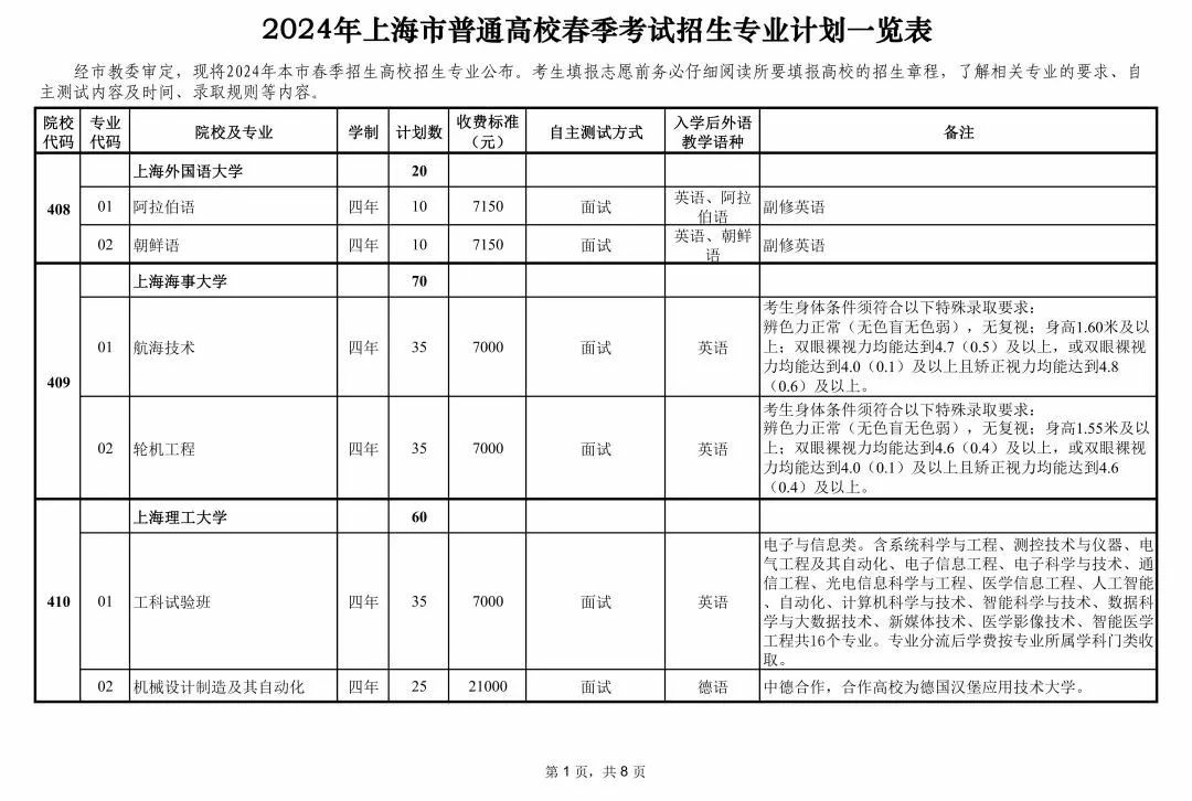 2024年上海市普通高校春季考试招生专业计划公布,详见↓