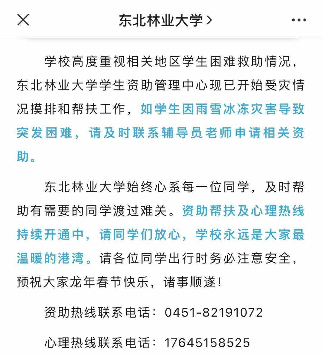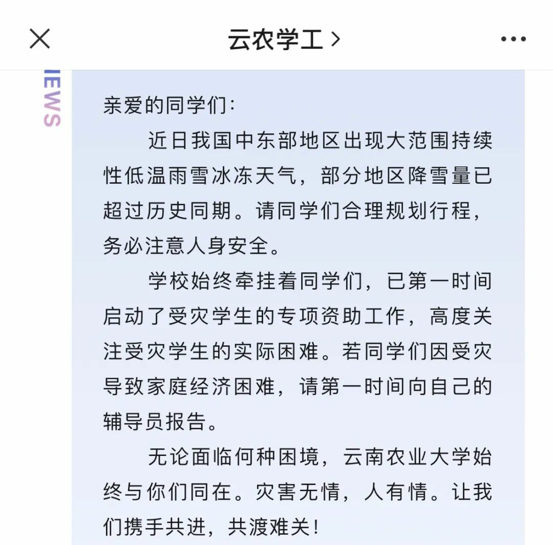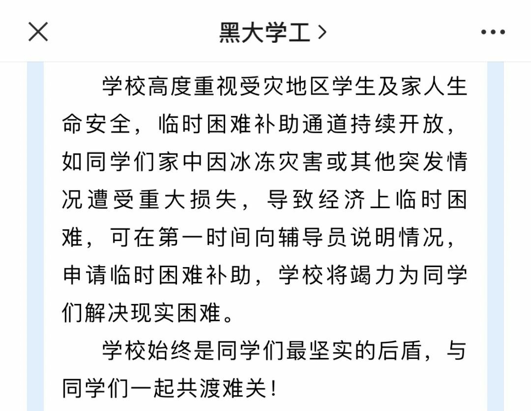 近日,多所高校发文向受冰冻雨雪灾害影响的学生,发放补助。值得关注的是,不少学校还开通了心理热线,对学生提供多方面帮扶。